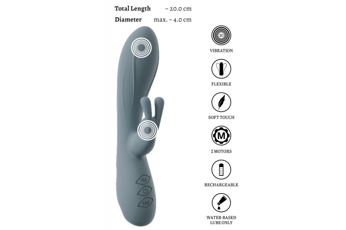 Дизайн вибратора тщательно проработан для достижения максимального комфорта и эффективности. Его изящная форма напоминает кролика, украшенного изогнутым ушком, что позволяет массировать и точечно стимулировать зоны G и клитора. Мягкий и гипоаллергенный силикон создает ощущение приятной нежности при контакте с кожей, а эргономичная форма удобно ложится в руку, обеспечивая надежный контроль во время использования. Благодаря своим компактным размерам — 20 сантиметров в длину, этот прибор легко справляется с задачами как домашних, так и поездочных развлечений.