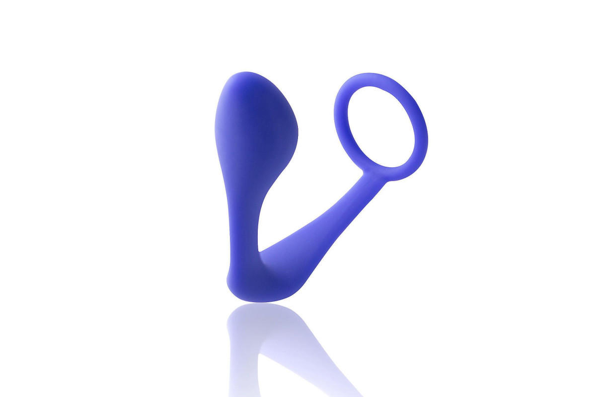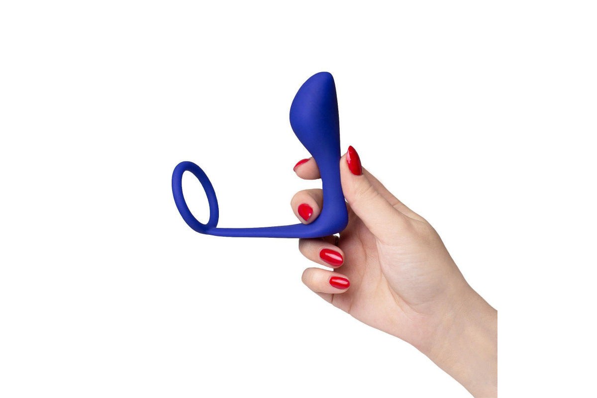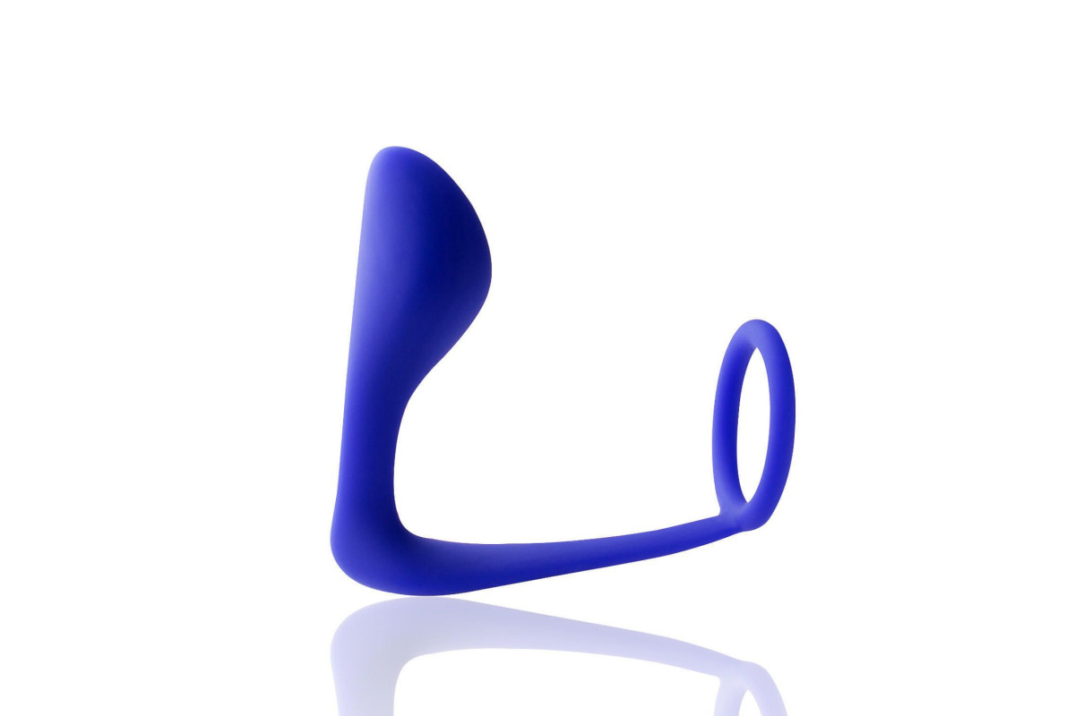 Синее эрекционное кольцо c анальным стимулятором Satyr