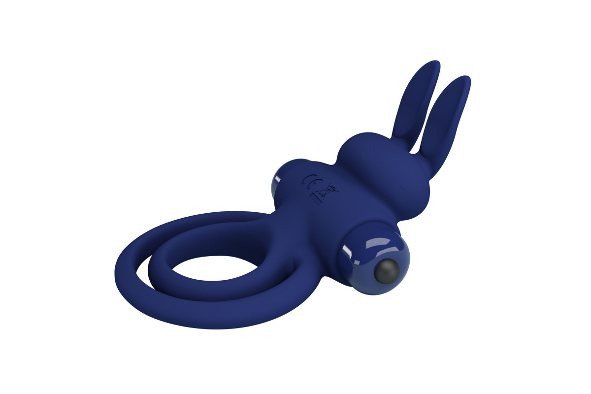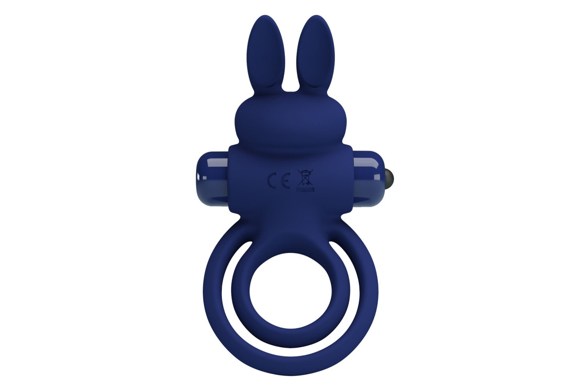 Синее эрекционное кольцо с вибростимуляцией клитора Powerful Ring