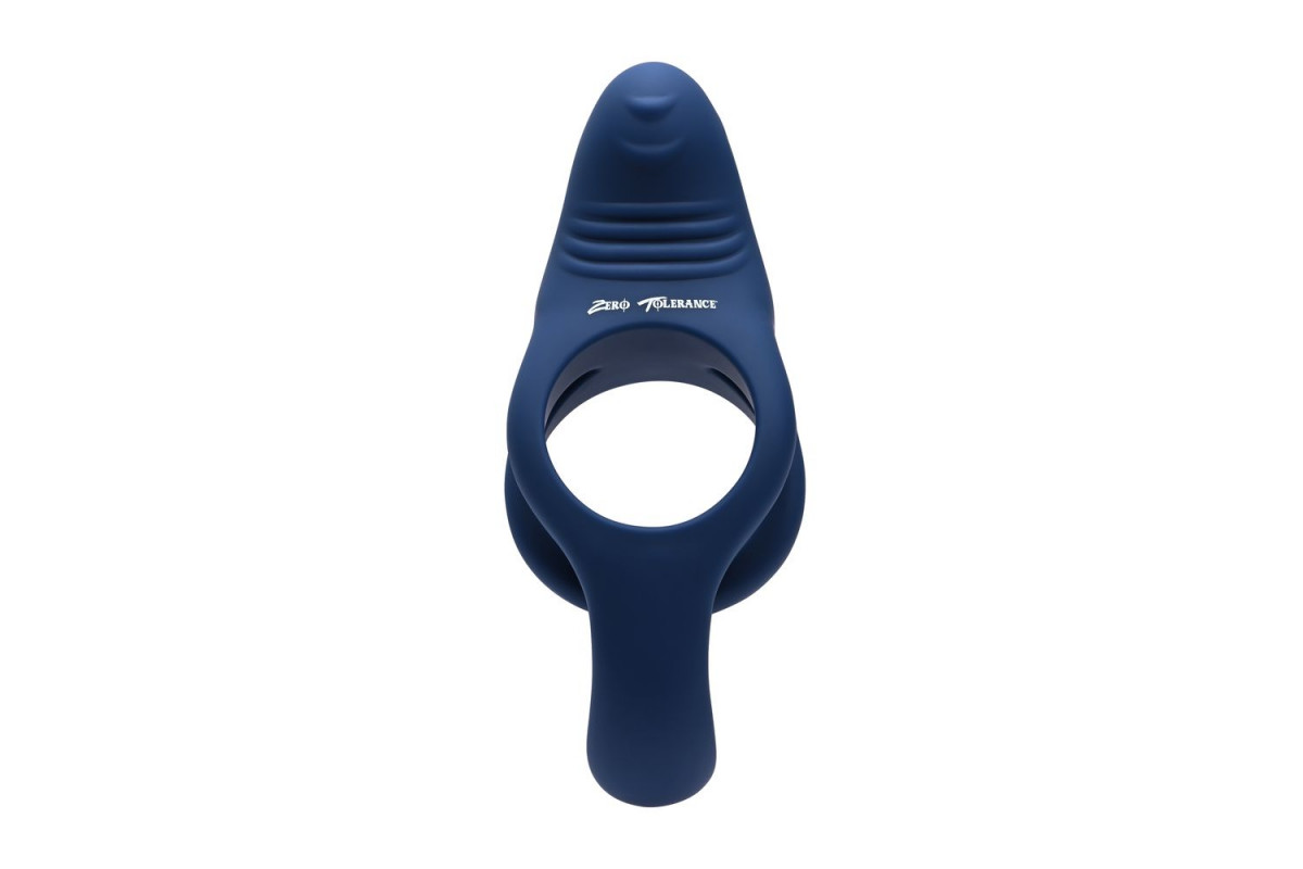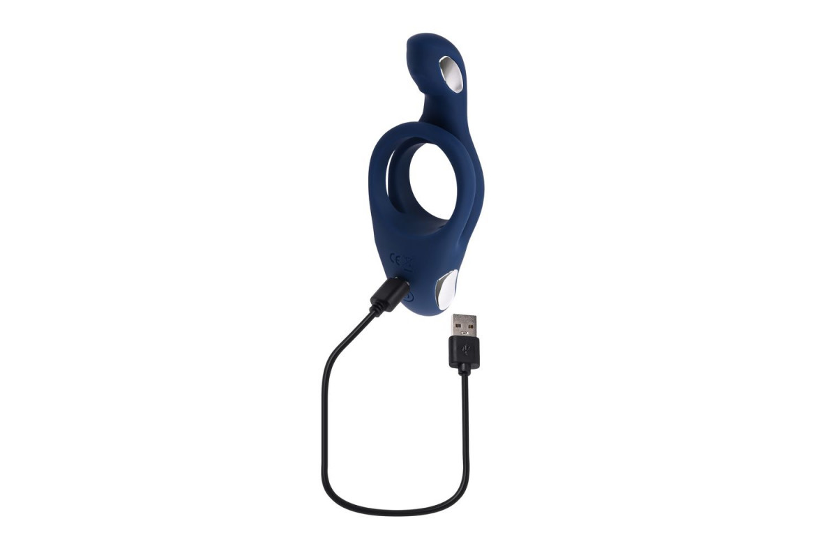 Синее эрекционное виброкольцо с двойным подхватом мошонки Ring Around The Rosy