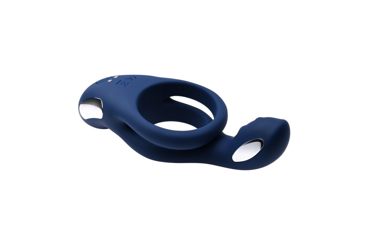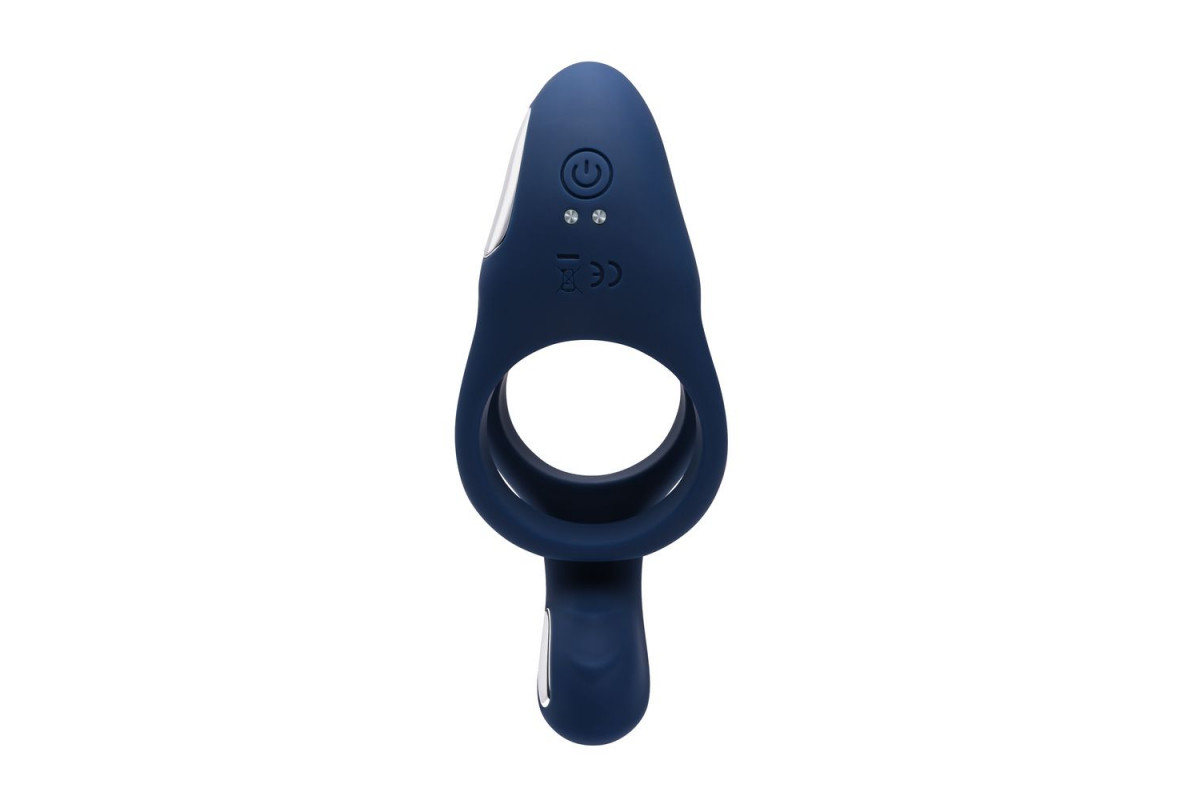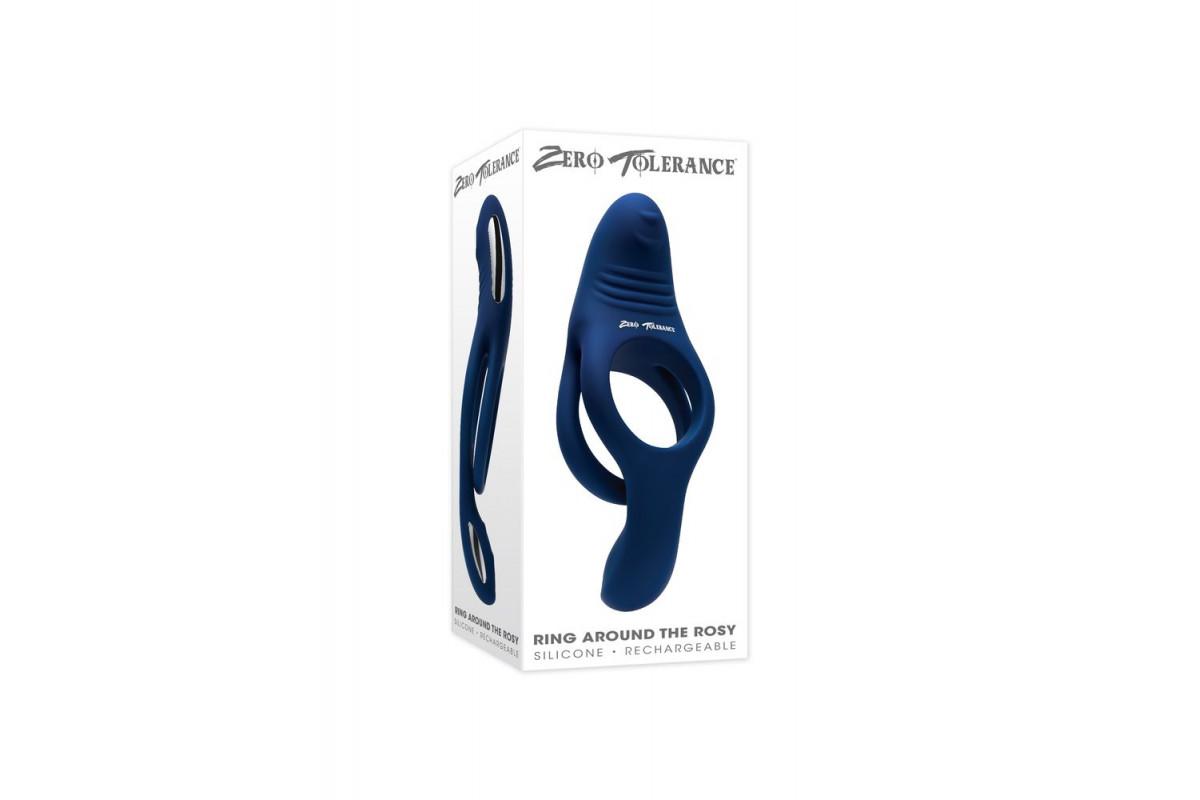 Синее эрекционное виброкольцо с двойным подхватом мошонки Ring Around The Rosy – усиление ощущений и максимальное удовольствие