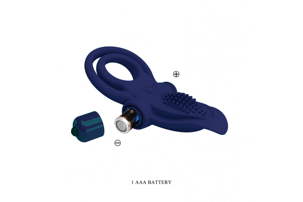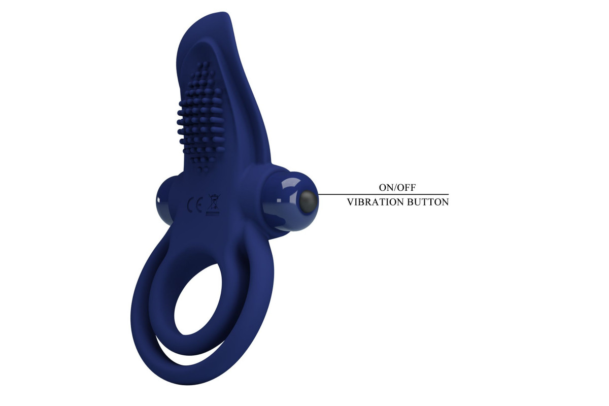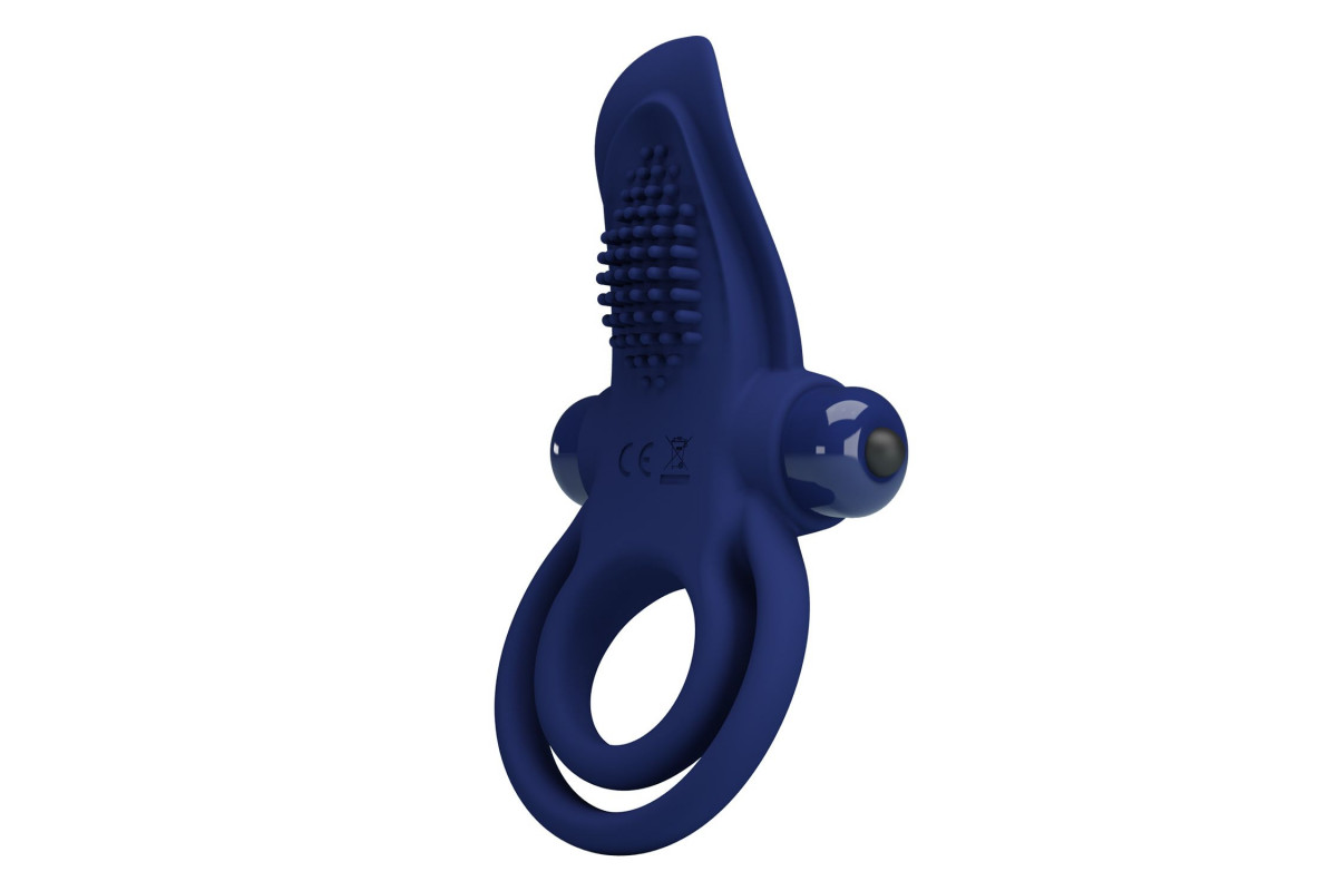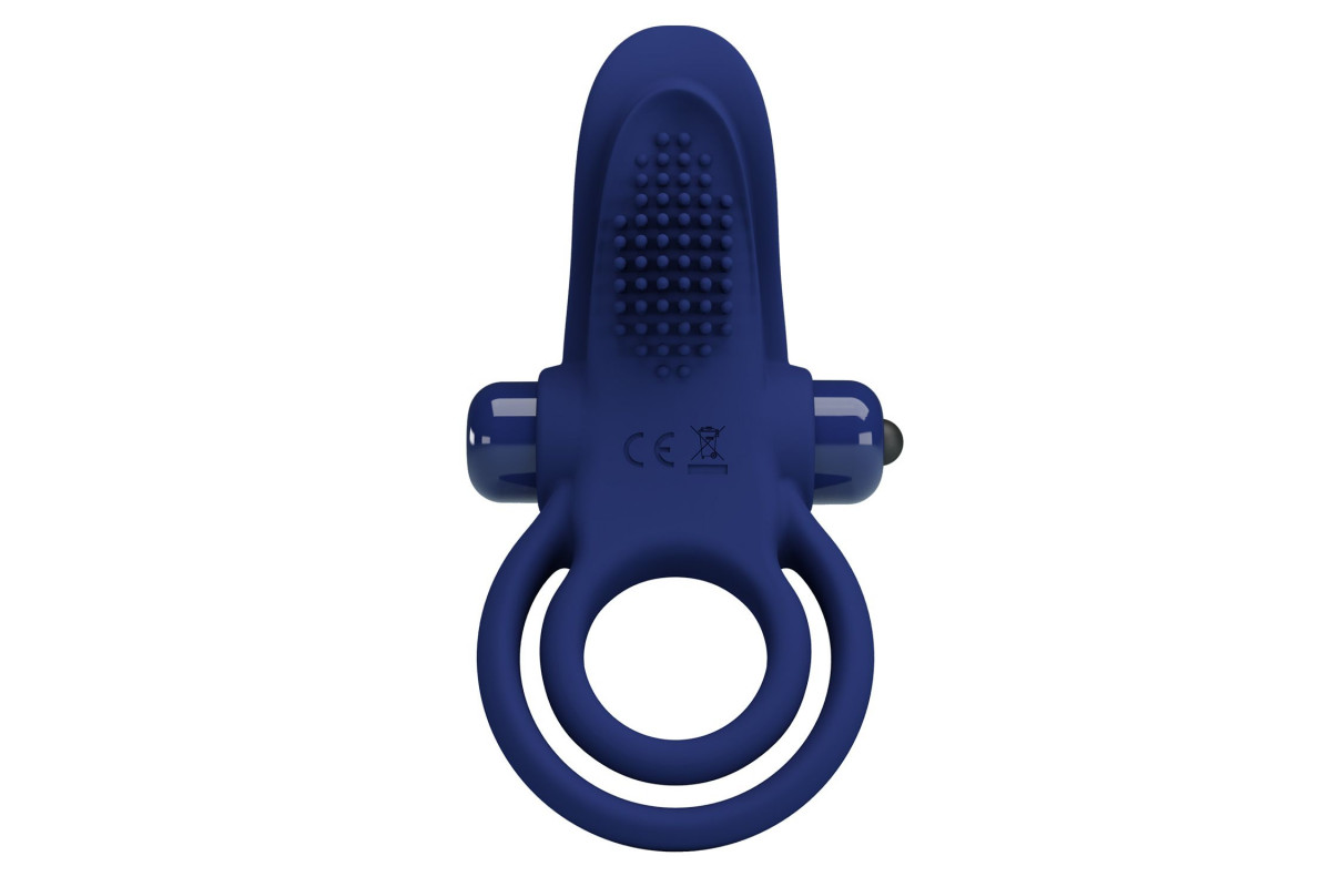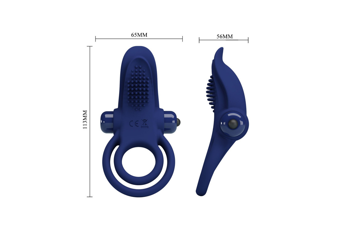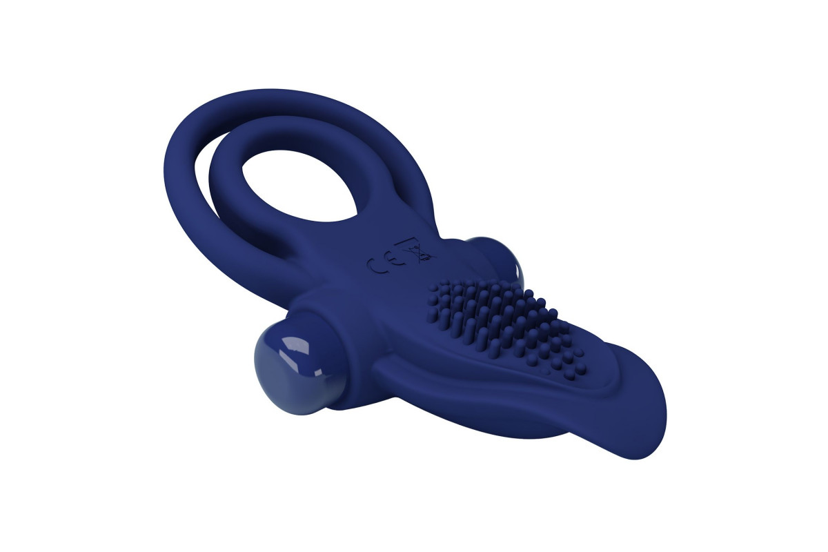 Синее силиконовое эрекционное кольцо с вибрацией и подхватом мошонки