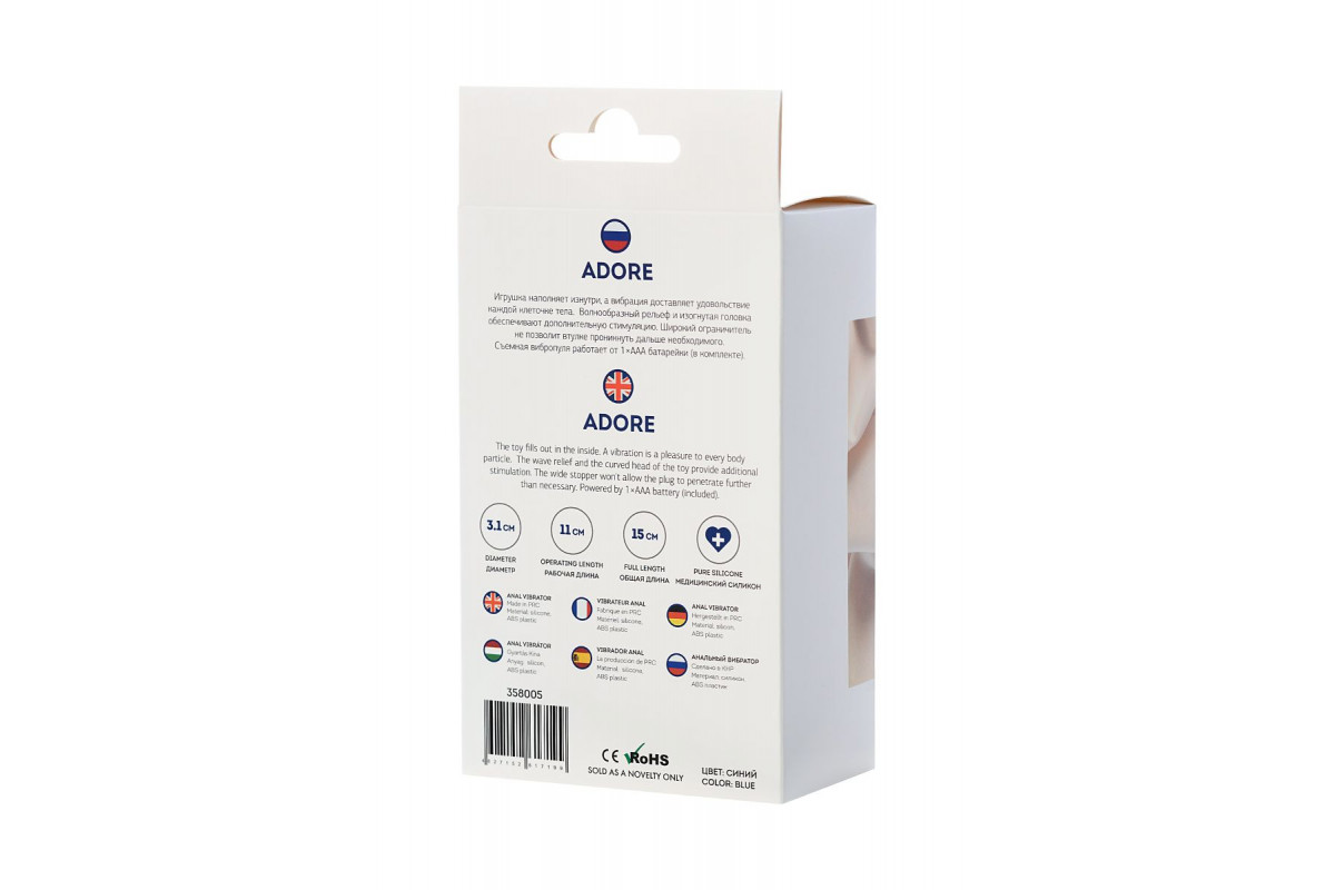 Синий анальный вибратор с загнутой головкой ADORE - 15 см.