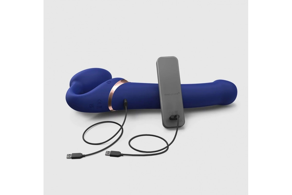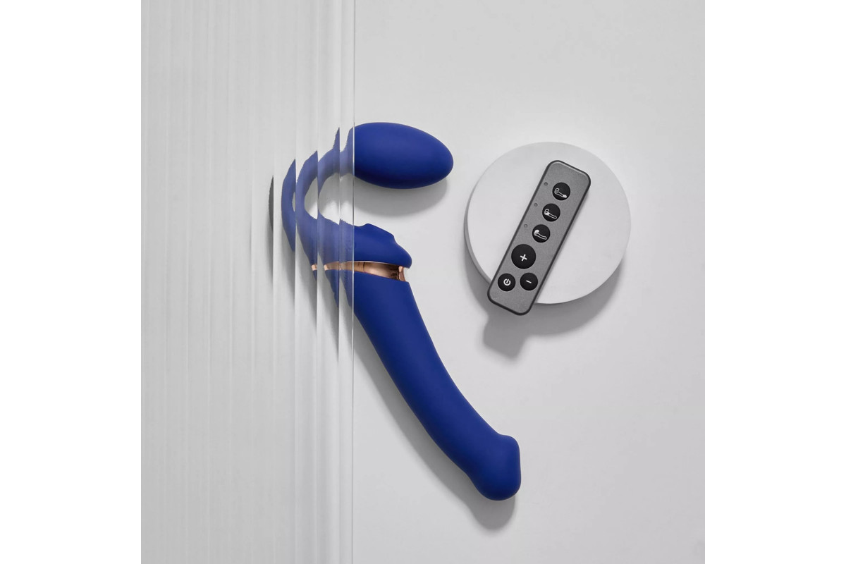 Синий безремневой страпон Multi Orgasm Bendable Strap-On size XL — новые горизонты удовольствия и комфорта
