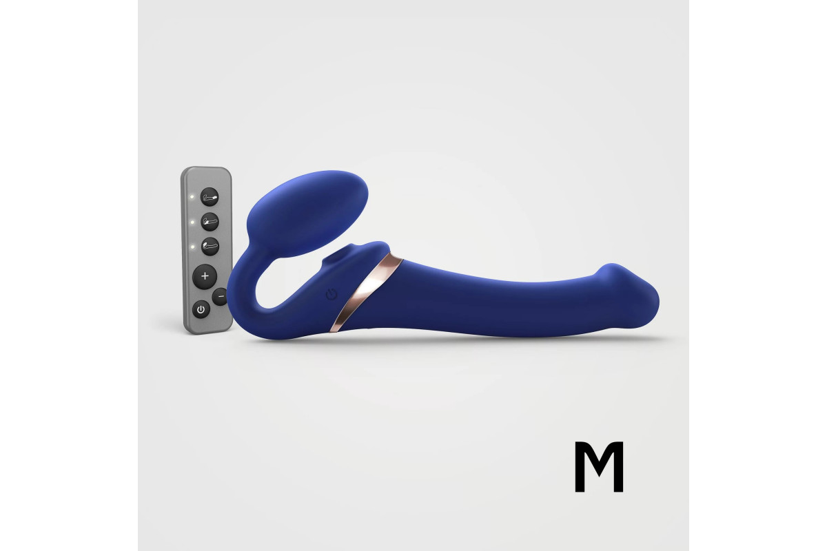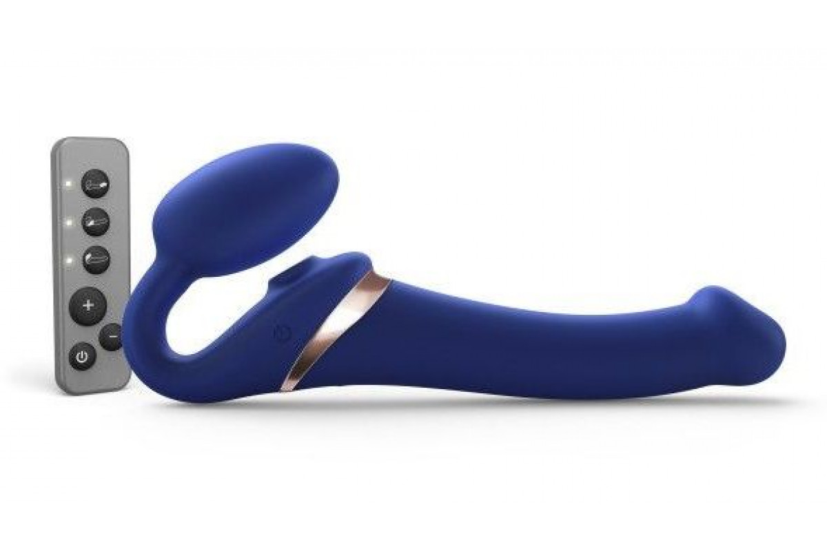 Синий безремневой страпон Multi Orgasm Size M с клиторальной стимуляцией