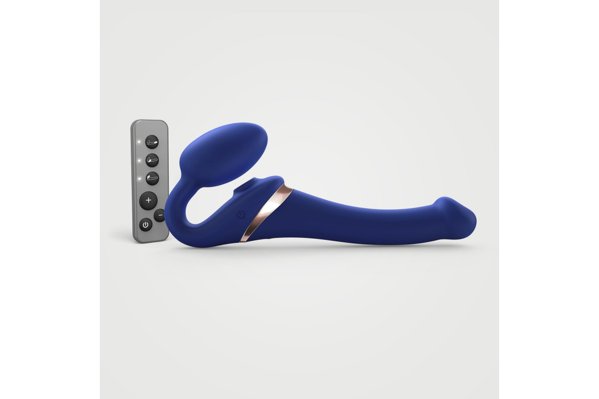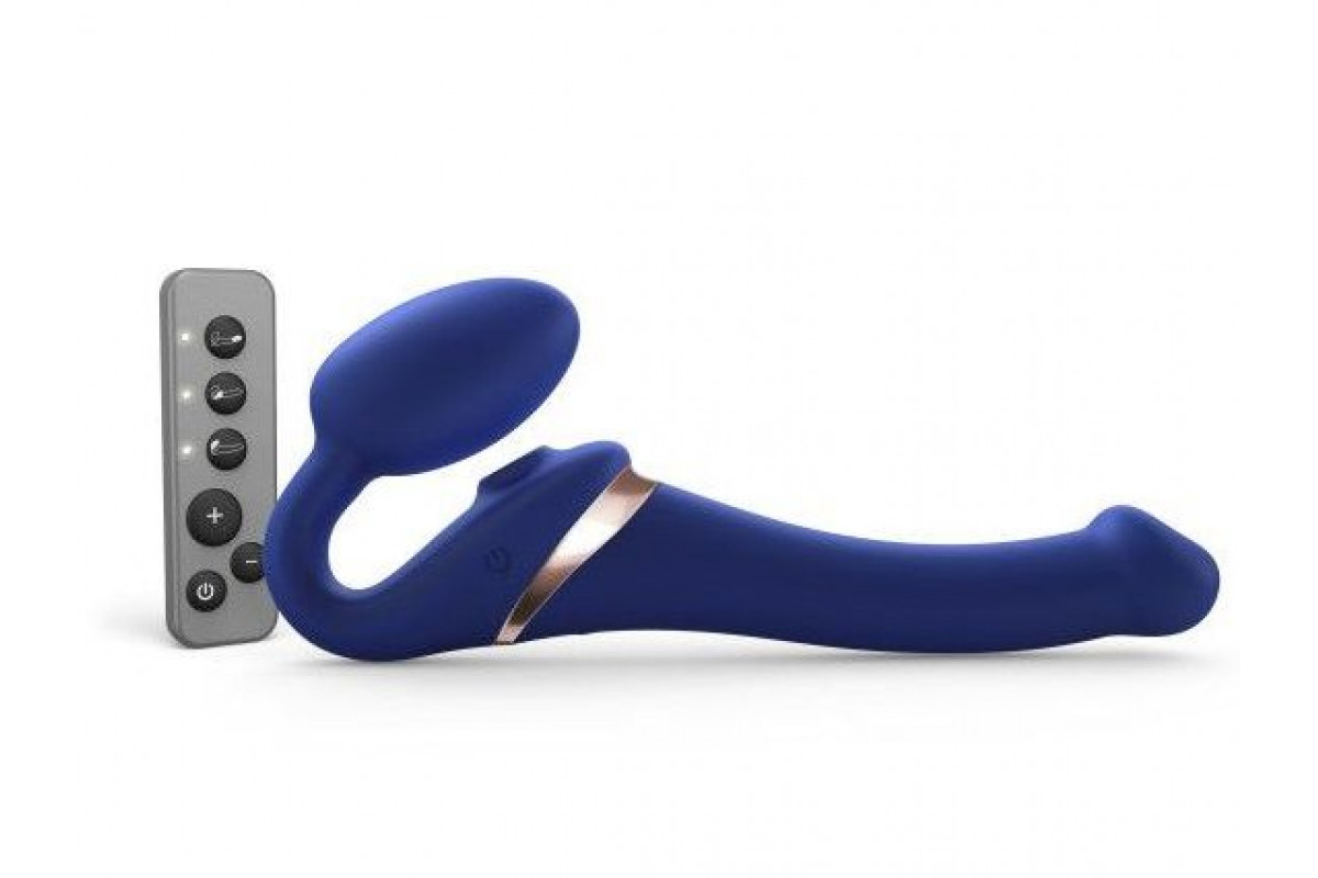 Синий безремневой страпон Multi Orgasm Size S с клиторальной стимуляцией