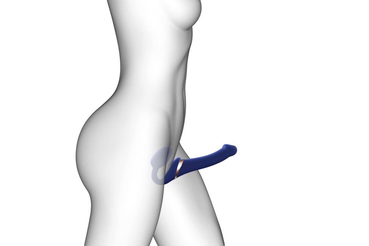 Синий безремневой страпон Multi Orgasm Size S с клиторальной стимуляцией — уникальный опыт удовольствия