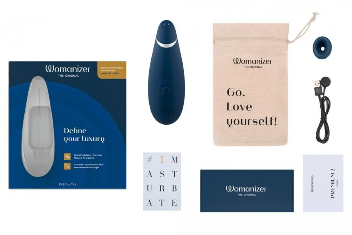 Синий клиторальный стимулятор Womanizer Premium 2 — революция наслаждения