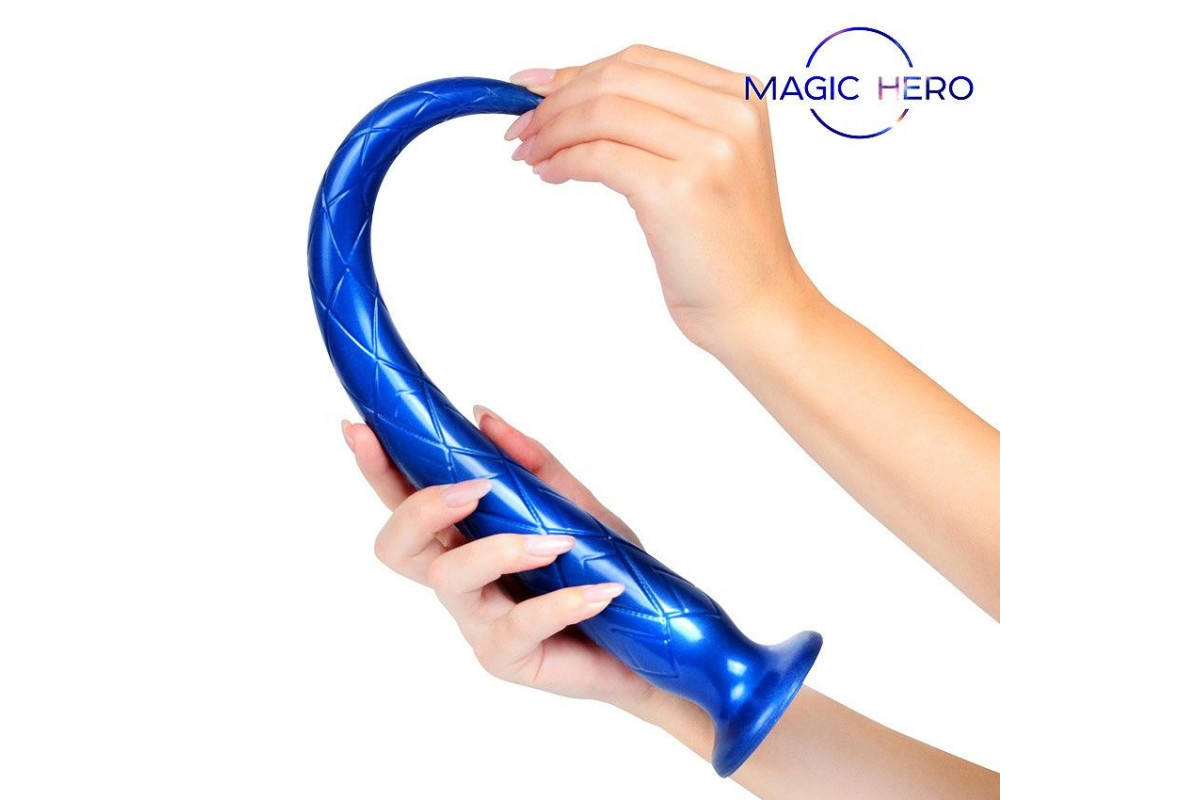 Синий стимулятор с ромбовидным рельефом - 37 см.