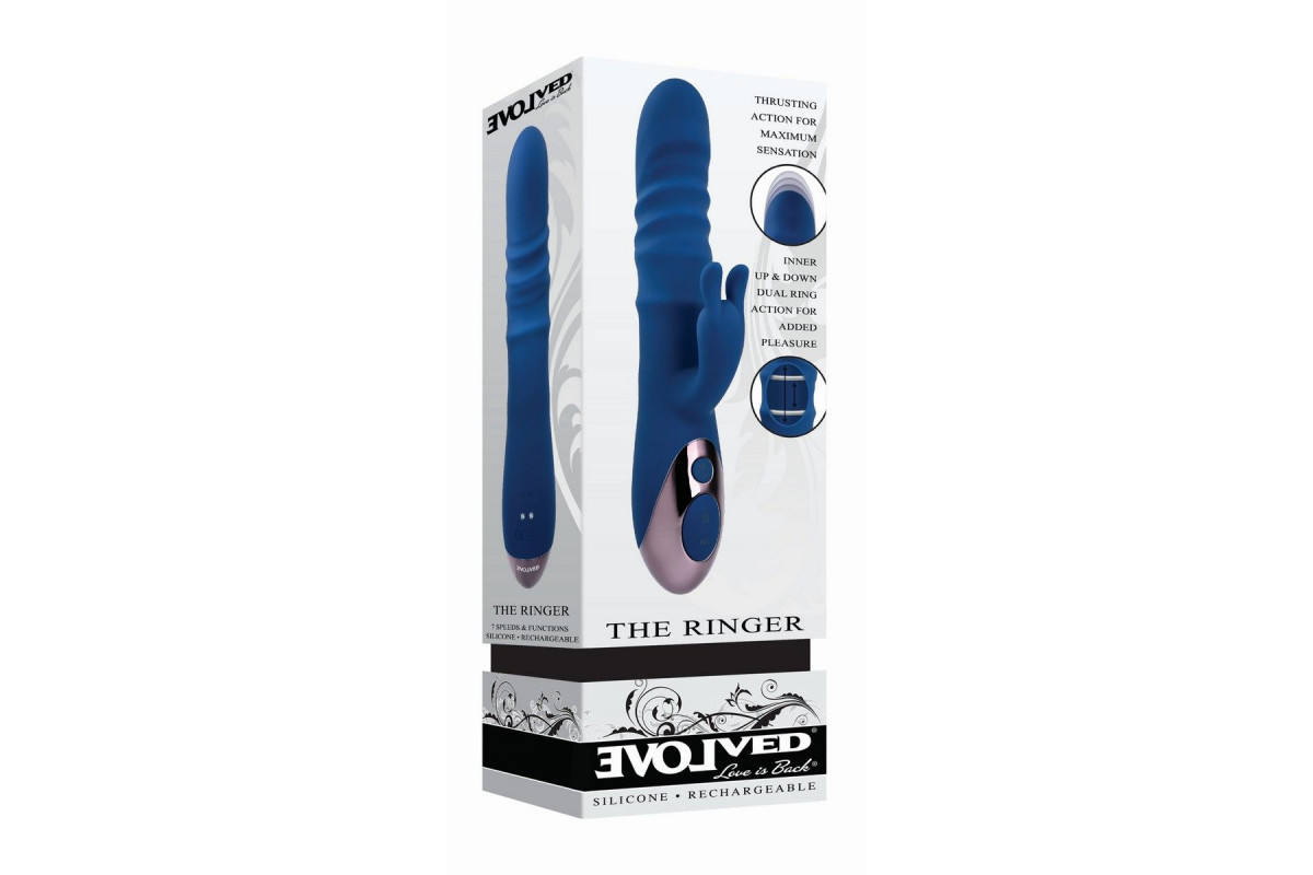 Синий вибратор-кролик The Ringer с функцией поступательных движений – идеальный выбор для тех, кто ищет новые ощущения