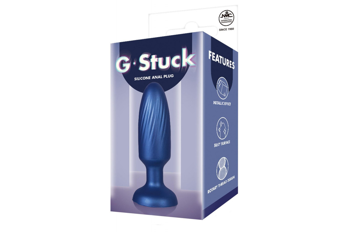 Синяя анальная пробка G Stuck. С легким блеском поверхности. Рабочая длина - 8,9 см.