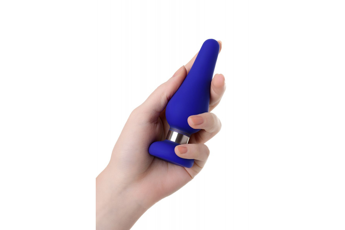 Синяя силиконовая анальная втулка с ограничителем - 11,5 см.