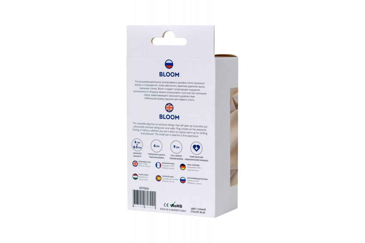Какие точные размеры у товара Синяя силиконовая расширяющая анальная втулка Bloom - 9 см. и кому он подойдёт?