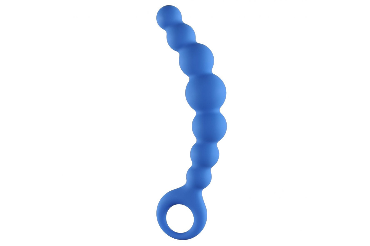 Синяя упругая анальная цепочка Flexible Wand - 18 см.