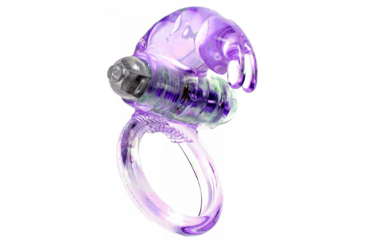 Сиреневое эрекционное виброкольцо с клиторальным зайчиком
