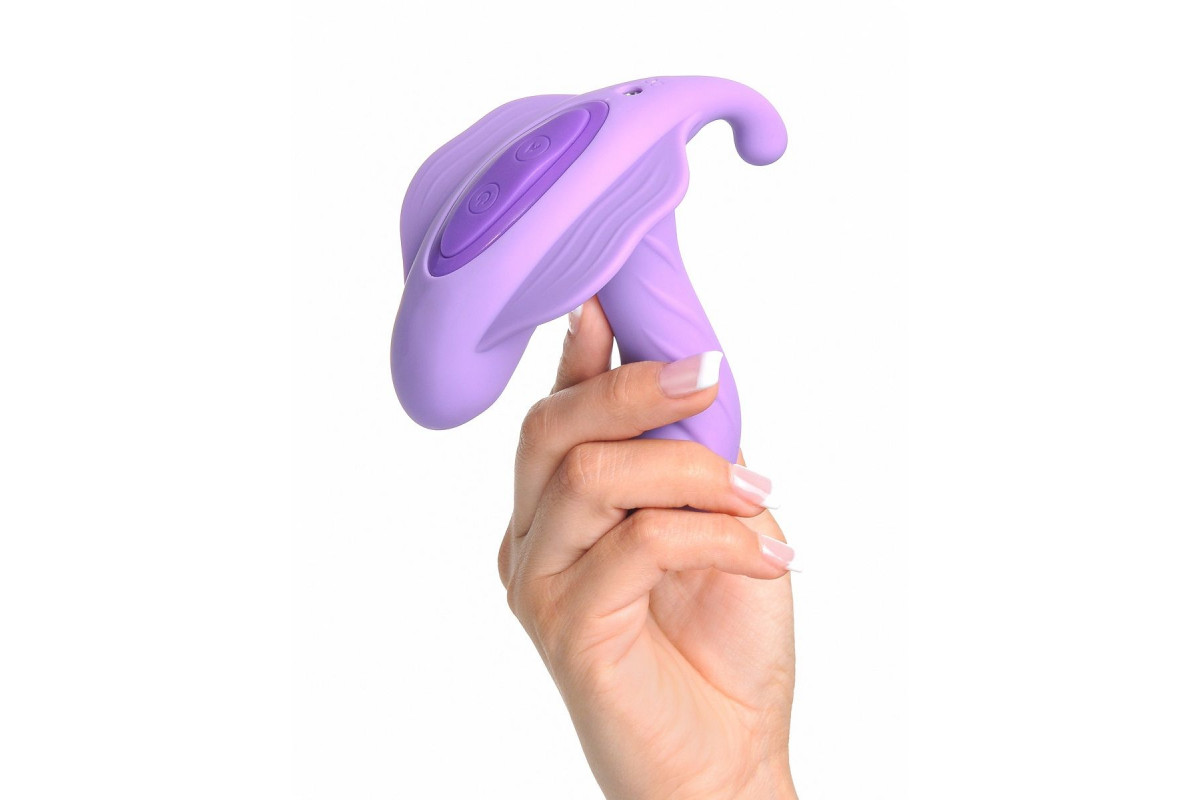 Тем временем основание стимулятора, похожее формой на бабочку плотно ложится на вульву и прекрасно стимулирует клитор, виброэлемент в основании синхронизирован с моторчиком в основном отростке. Функция внутреннего нагрева может быть активирована с помощью отдельной кнопки на основании (до 40 по Цельсию / 104 по Фаренгейту).