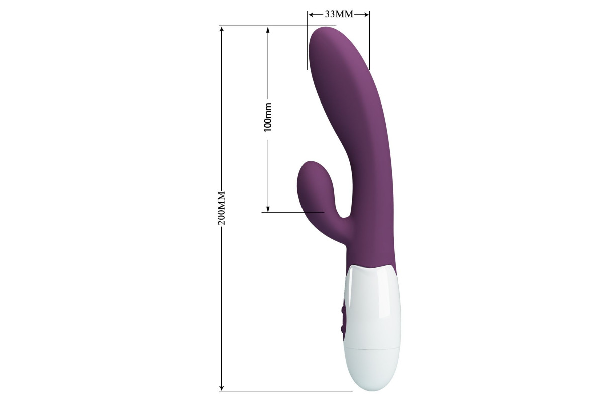 Какие точные размеры у товара Сливовый вибратор со стимулятором клитора Alvis - 20 см. и кому он подойдёт?