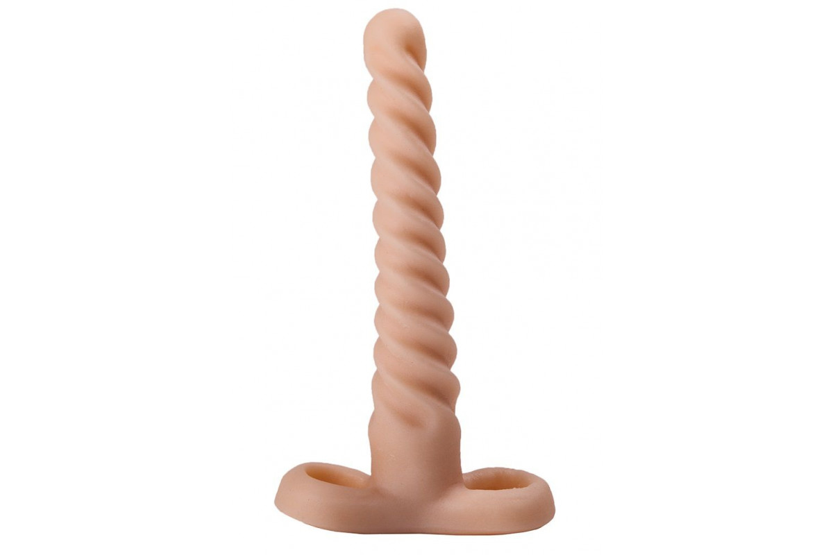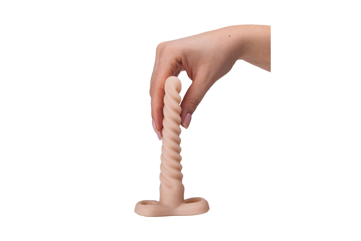 Выполненный из приятного на ощупь геля, он имеет спиралевидный рельеф от тоненького кончика и до ограничительного основания-восьмёрки.
