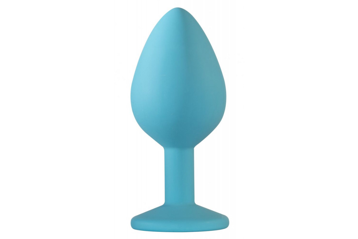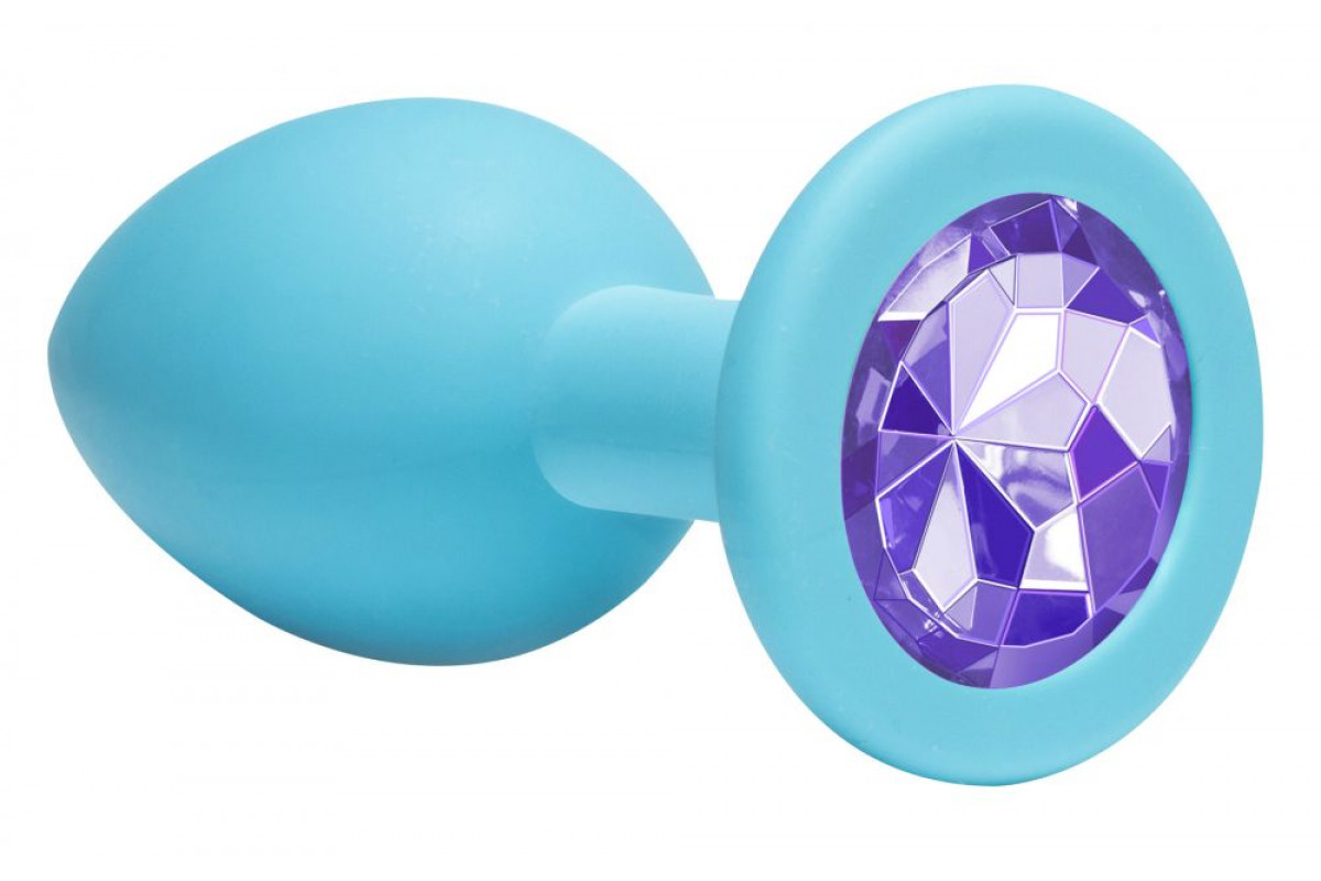 Средняя голубая анальная пробка Emotions Cutie Medium с фиолетовым кристаллом - 8,5 см.