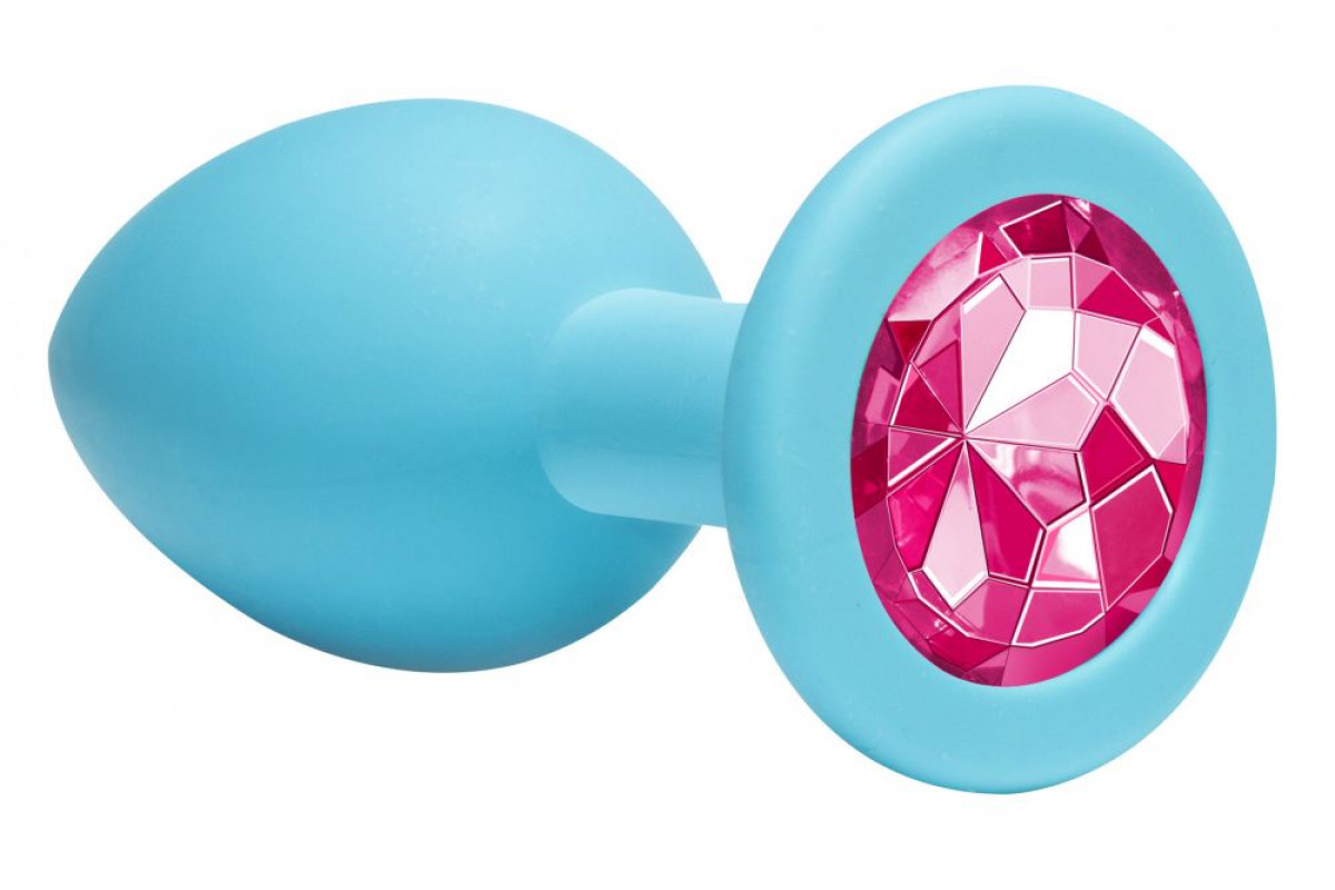 Средняя голубая анальная пробка Emotions Cutie Medium с розовым кристаллом - 8,5 см.