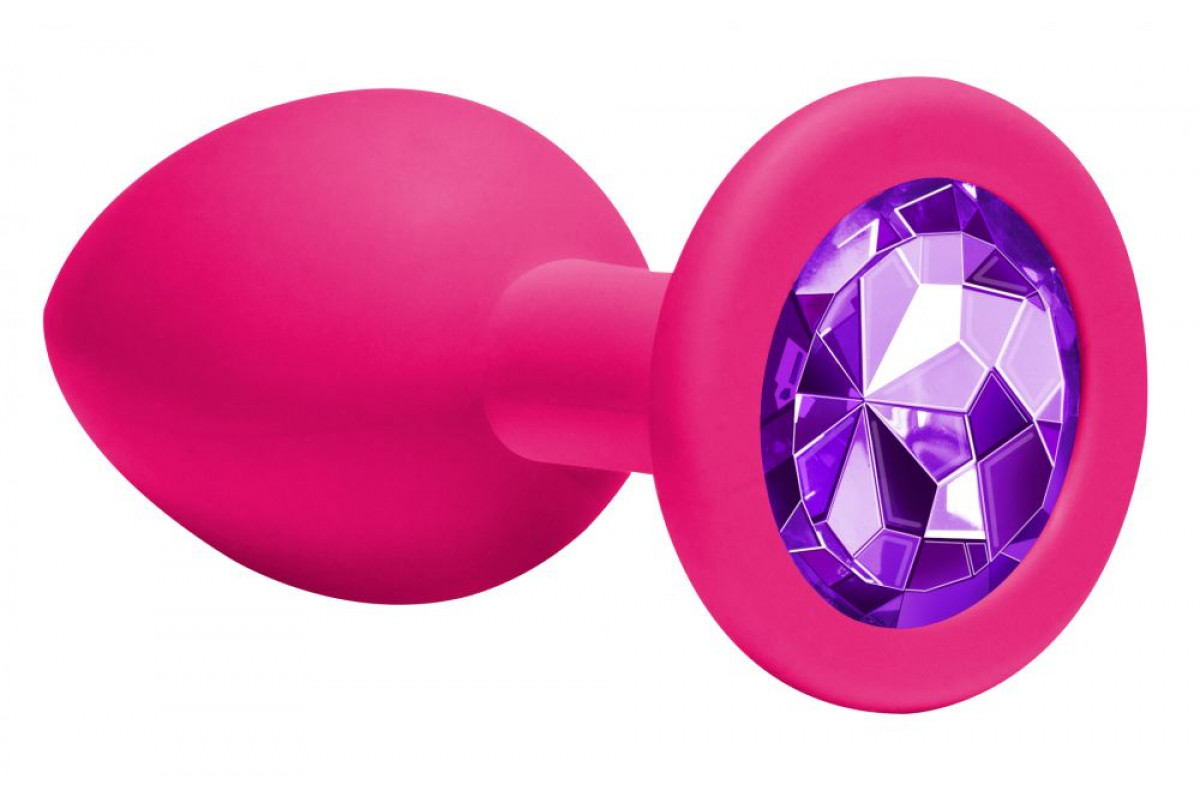 Средняя розовая анальная пробка Emotions Cutie Medium с фиолетовым кристаллом - 8,5 см.