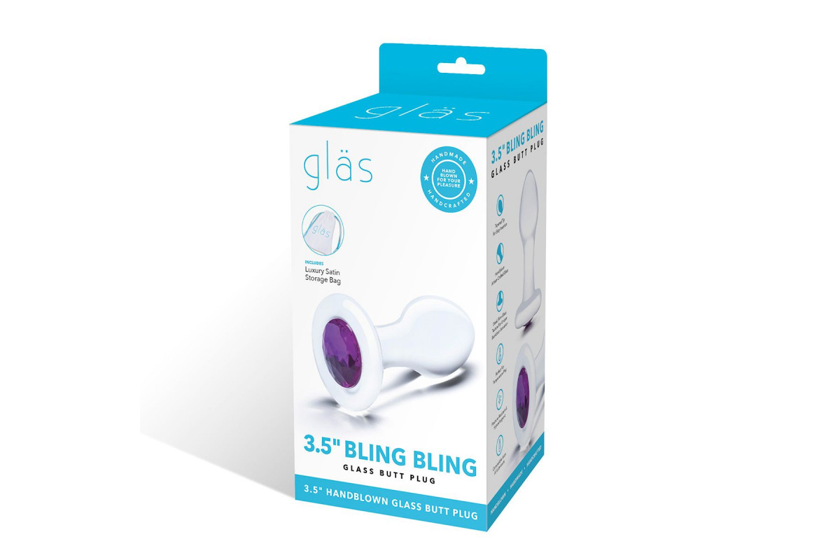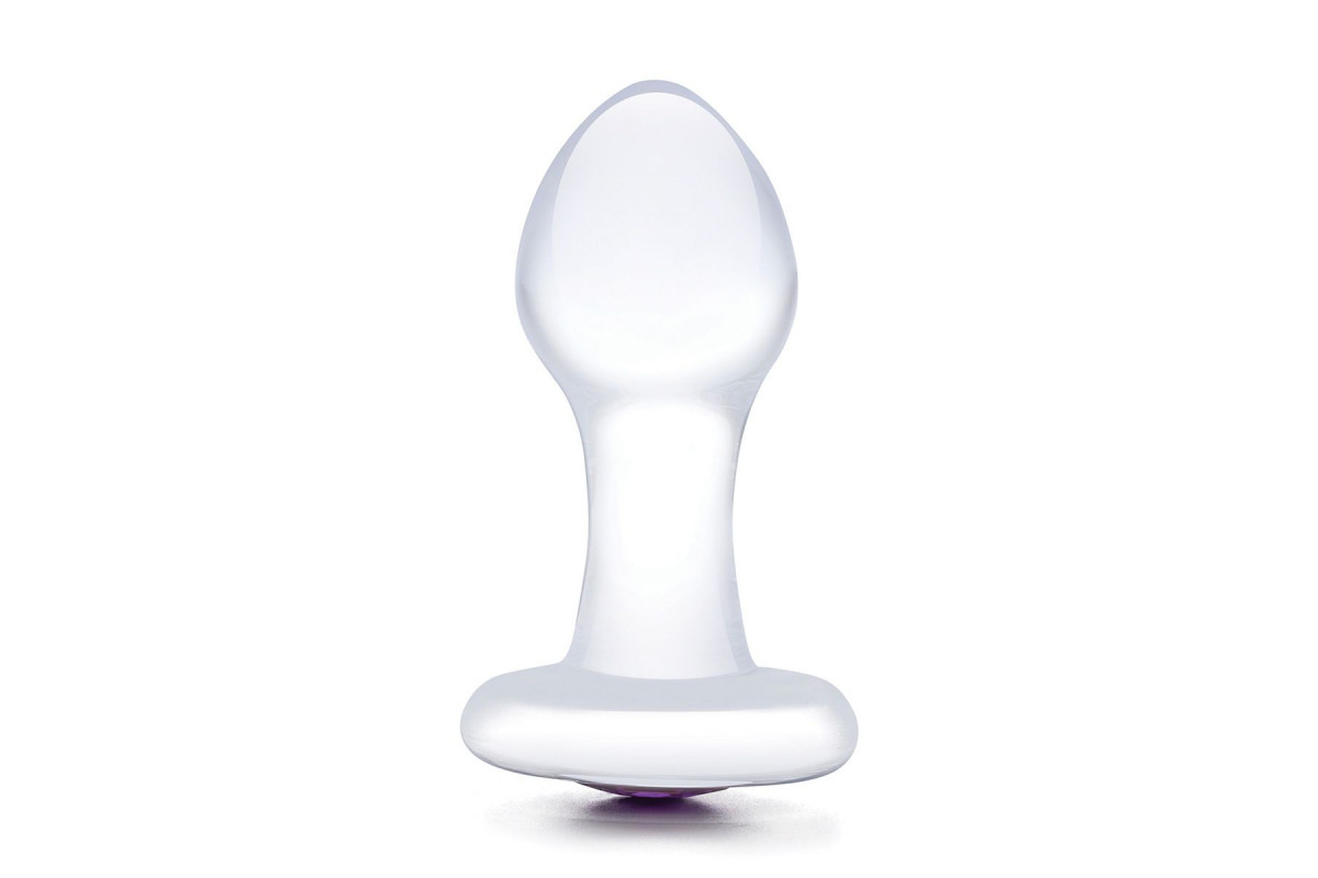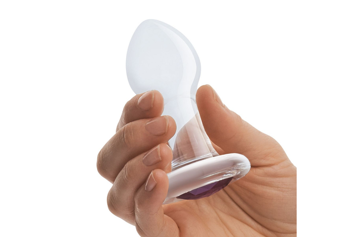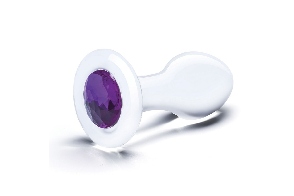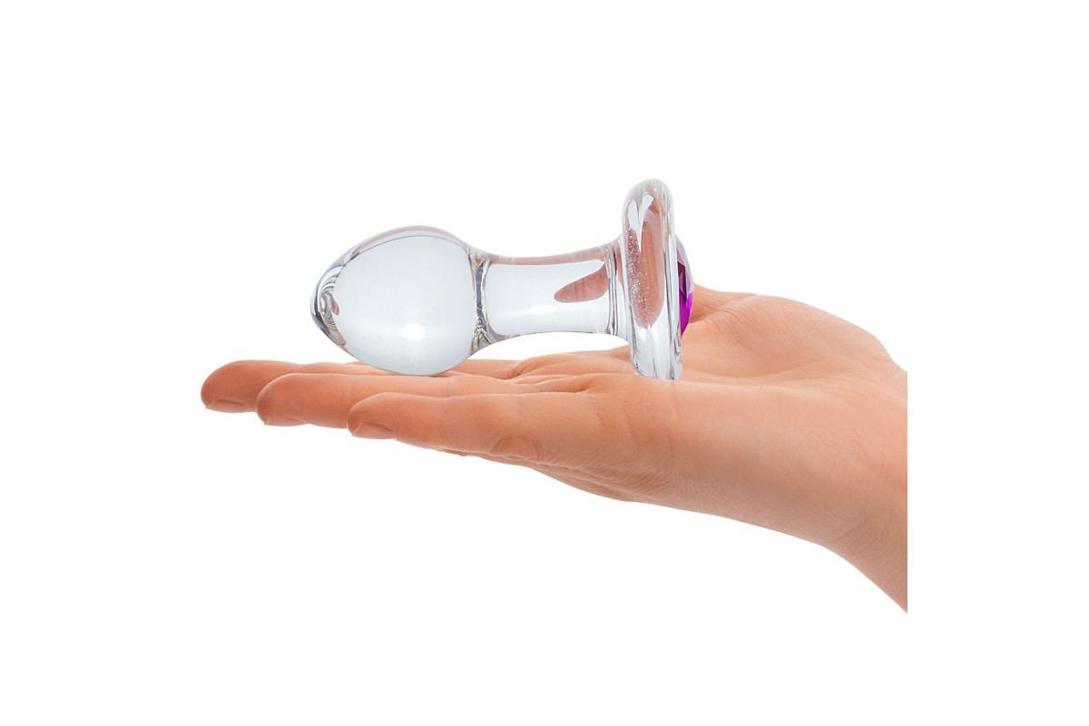 Стеклянная анальная пробка с фиолетовым стразом - 9 см.