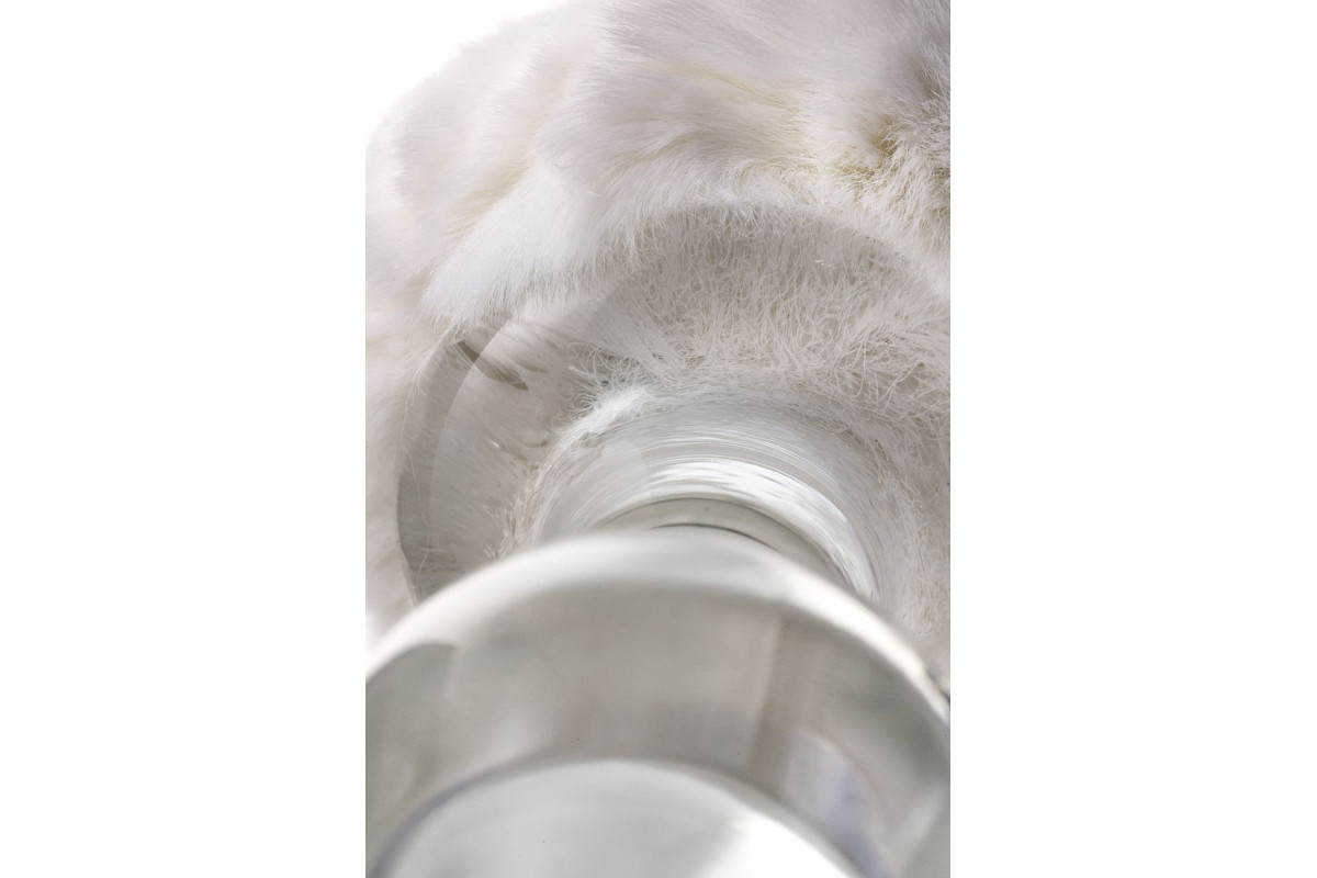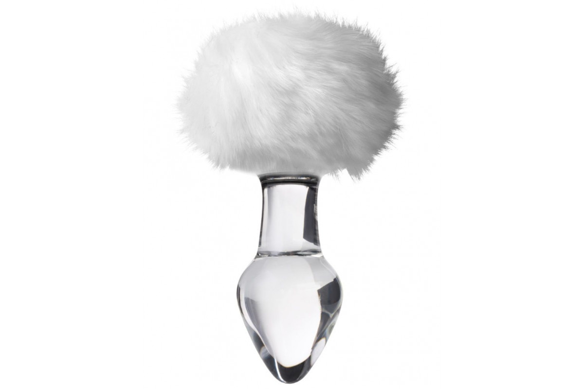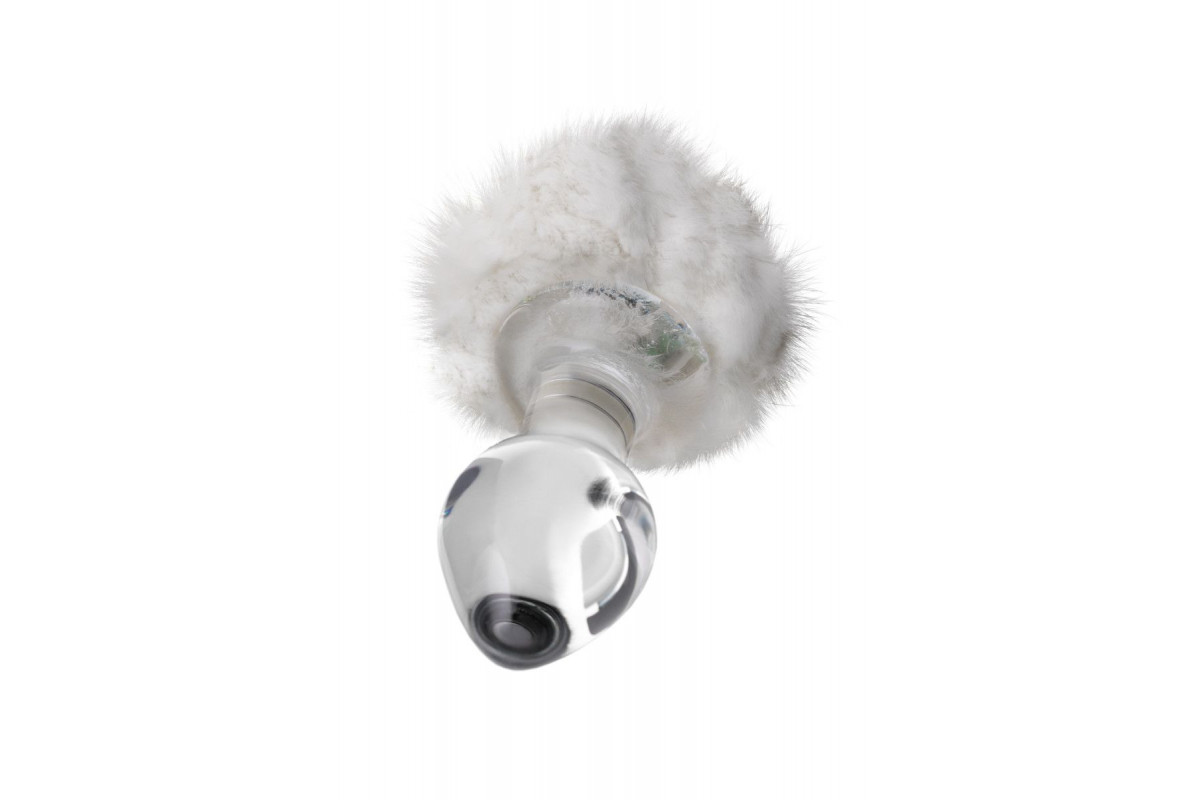 Стеклянная анальная втулка с белым хвостиком - 14 см.