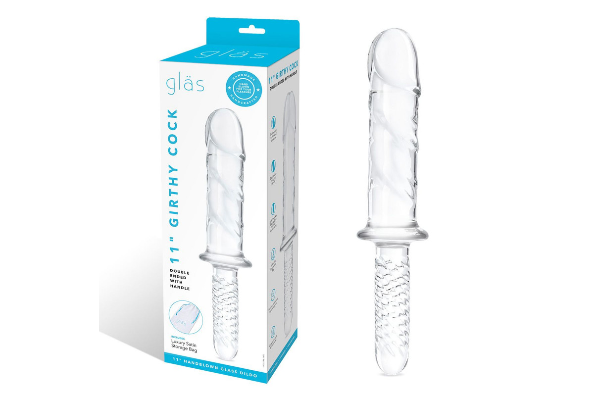 Стеклянный фаллоимитатор с рукоятью 11’’ Girthy Cock Double Ended With Handle - 28 см.