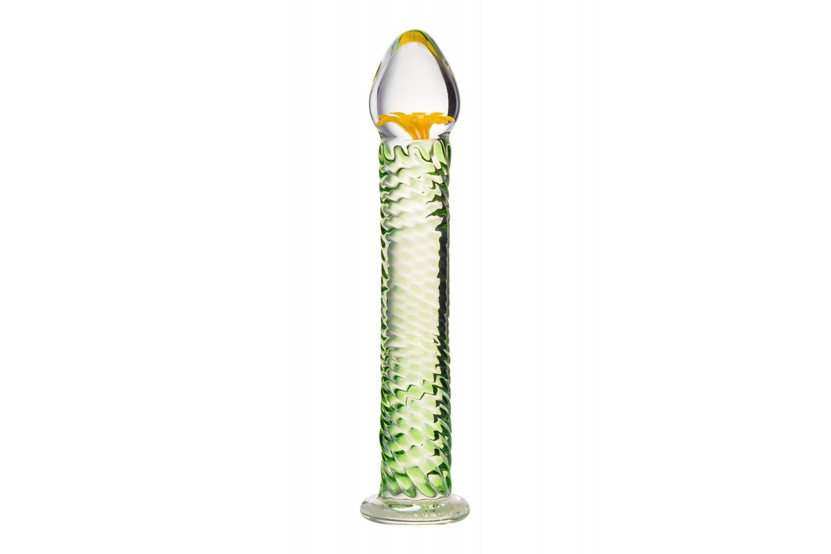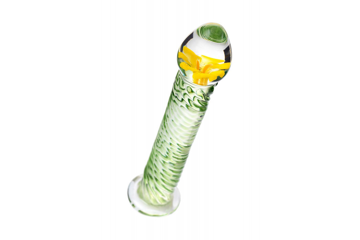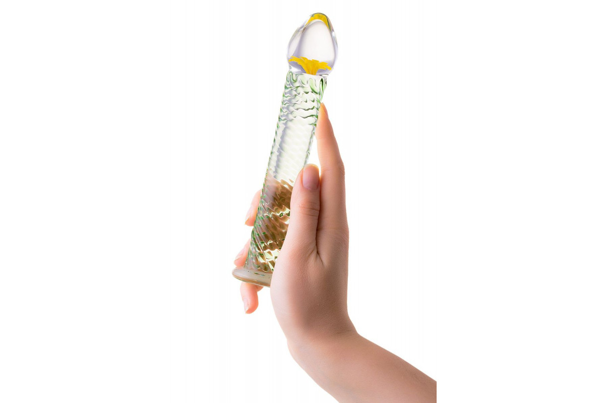 Элегантный стеклянный фаллоимитатор со спиралевидным рельефом – 16,5 см