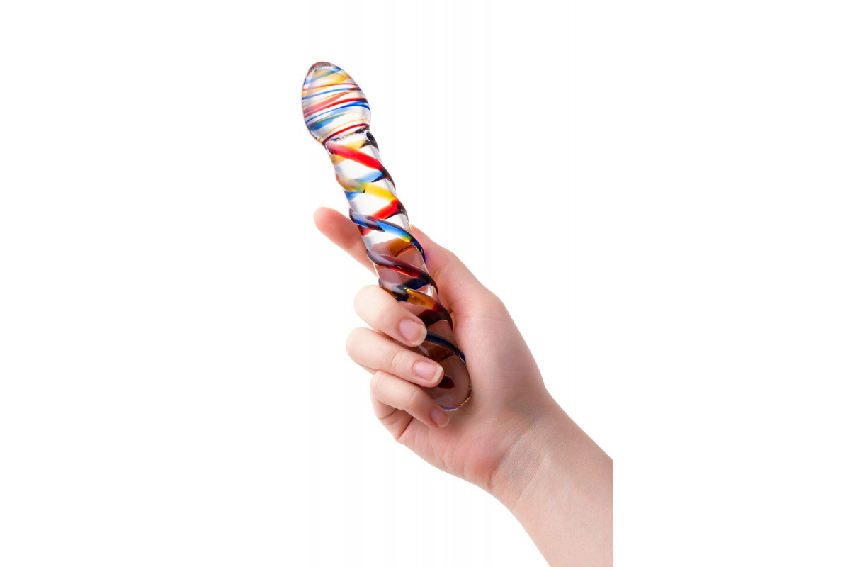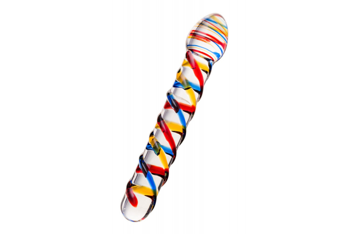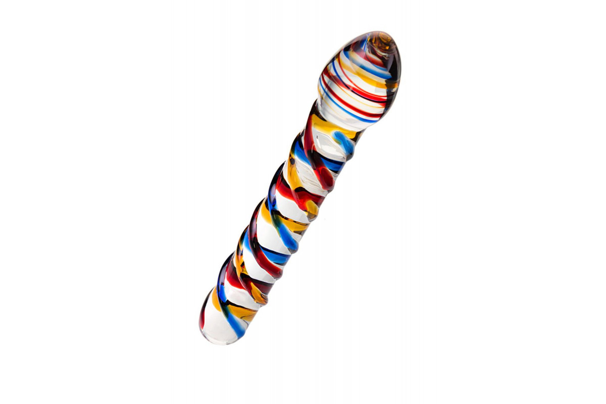 Тельце этого стеклянного фаллоса сверху донизу испещрено разноцветными спиралями. Уникальный рельеф секс-игрушки подарит потрясающую стимуляцию вагины – удастся почувствовать все эти волнительные выступы.