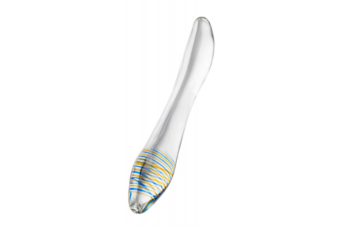 Этот фаллоимитатор отличается прозрачным стеклянным корпусом и двухцветным кончиком, что придает ему особую привлекательность и стиль. Его гладкая поверхность обеспечивает легкое введение и комфорт во время использования, а уникальный дизайн позволяет экспериментировать с различными техниками и ощущениями.