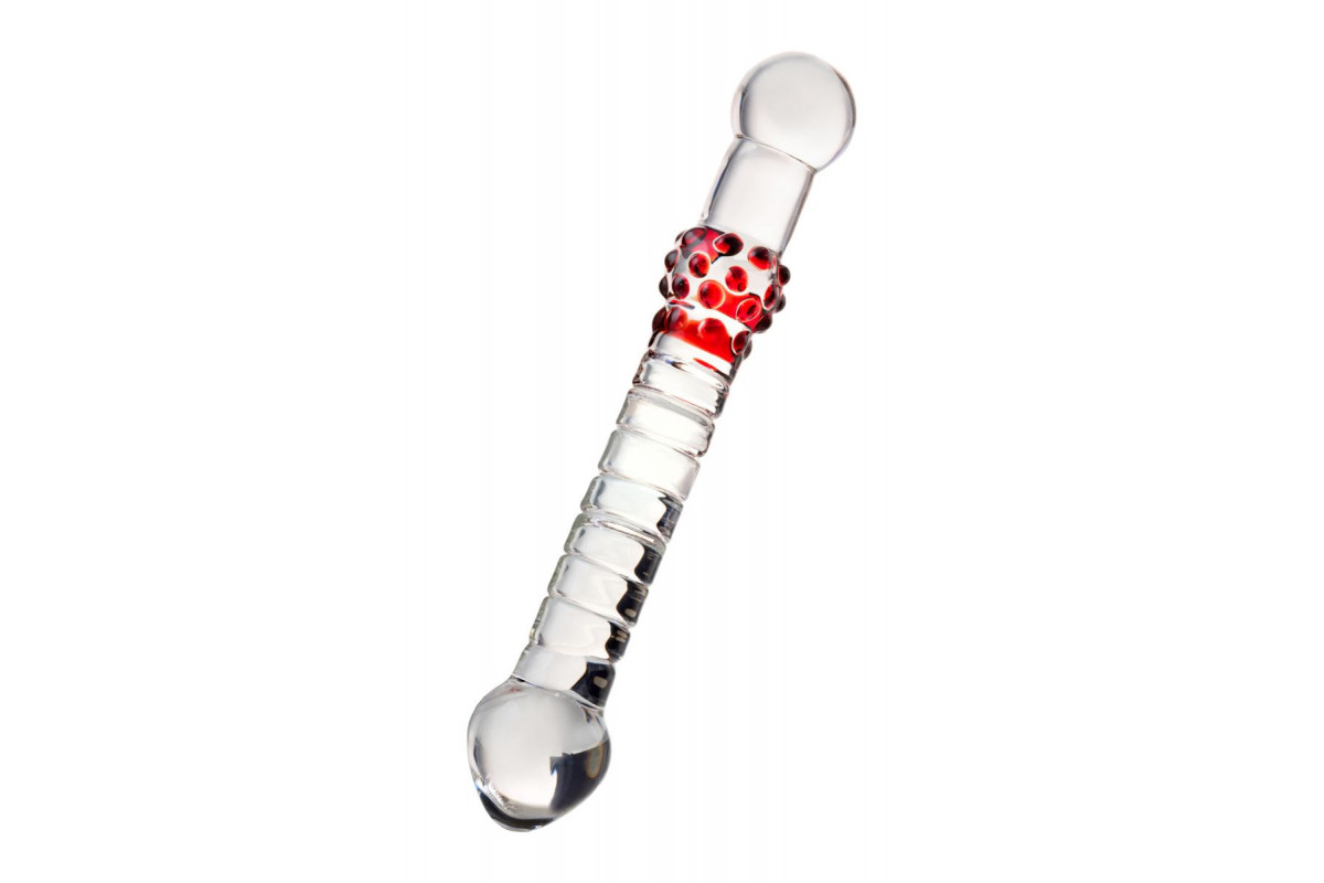 Стеклянный стимулятор с ручкой-шаром и цветными пупырышками — 22 см