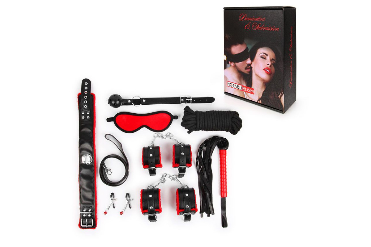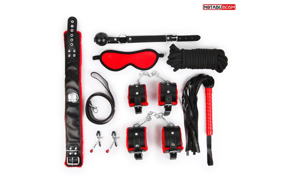Стильный черно-красный набор БДСМ для взрослых — полный комплект для ярких ощущений