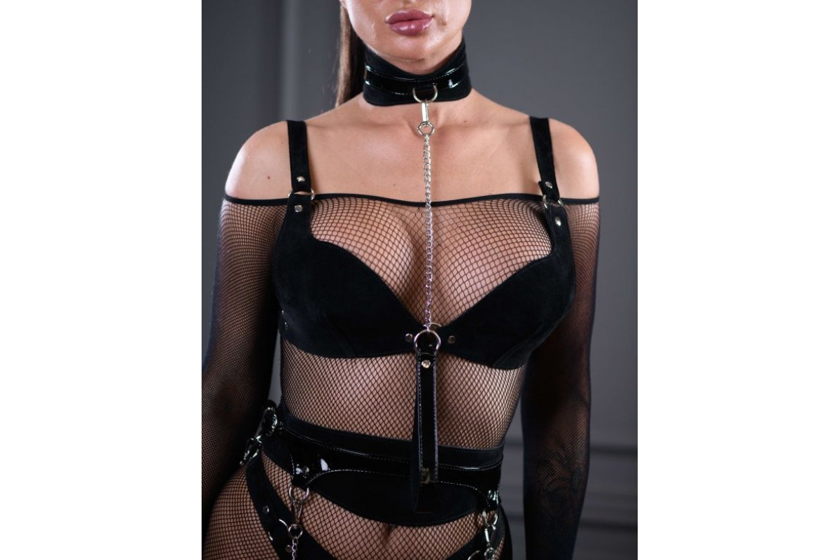 Стильный замшевый ошейник с поводком Sex Game — идеальный аксессуар для взрослых