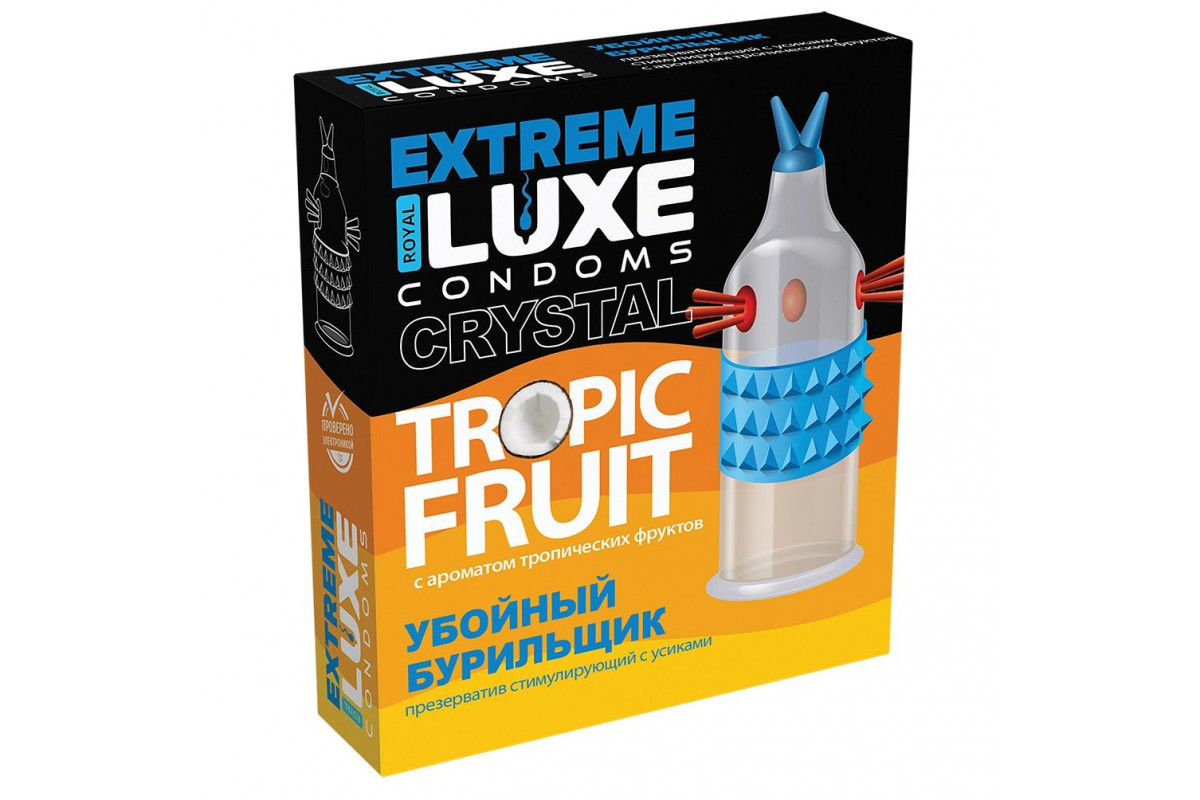 Стимулирующий презерватив «Убойный бурильщик» с ароматом тропических фруктов — 1 шт.