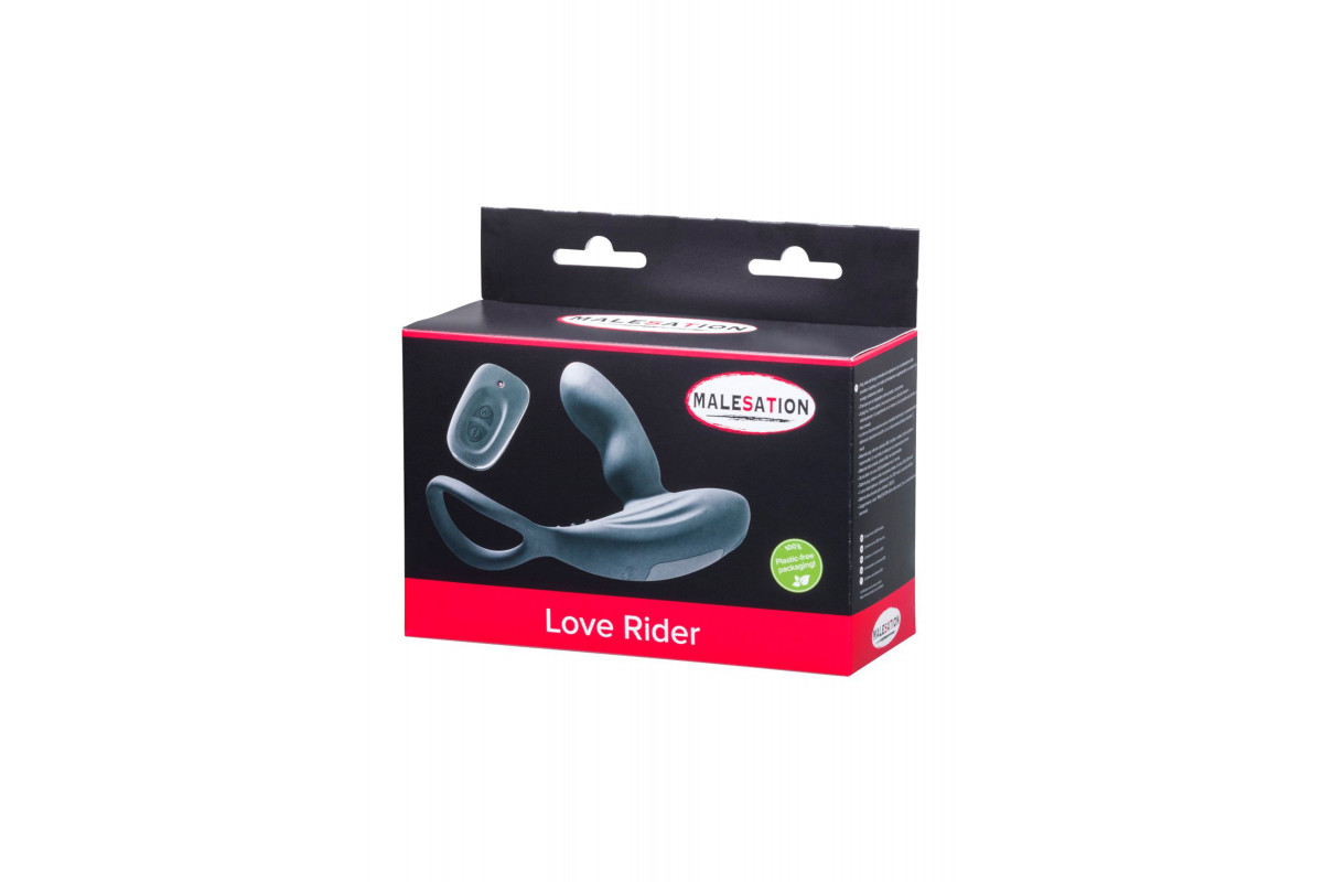 Love Rider MALESATION изготовлен из мягкого, безопасного силикона и АБС-пластика, что делает его приятным на ощупь и полностью гипоаллергенным. Водонепроницаемость позволяет использовать его не только в спальне, но и в душе. Устройство легко чистится, что обеспечивает гигиену и долговечность. Для работы стимулятора предусмотрен перезаряжаемый литиевый аккумулятор, который заряжается через USB-кабель. Полная зарядка занимает 3-4 часа и обеспечивает до 150 минут работы в зависимости от режима использования. Диаметр кольца для мошонки – 4,8 см.