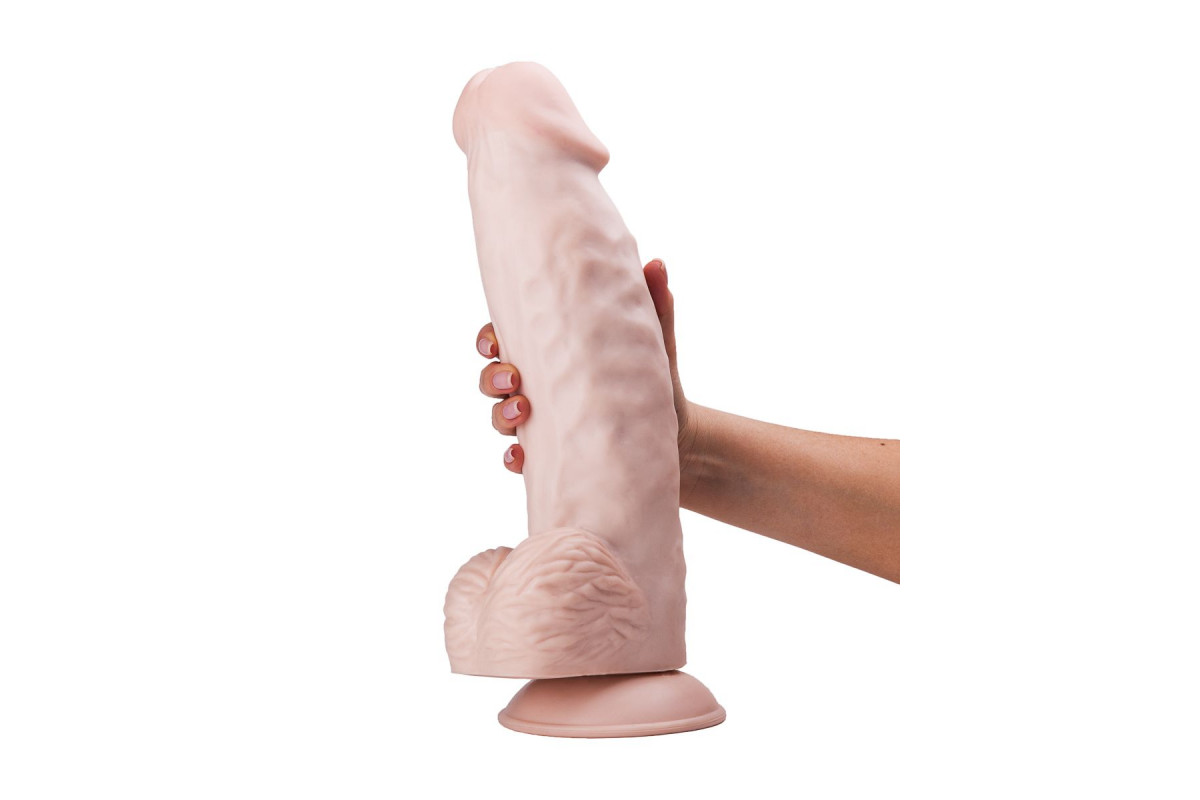 Фаллос, выполненный из упругого материала TPE, покорит вас своими нешуточными размерами и реалистичными формами – есть и розовая головка, и вены на стволе, и мягкая мошонка.