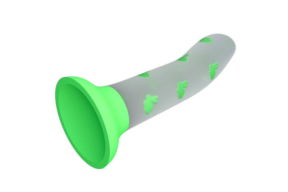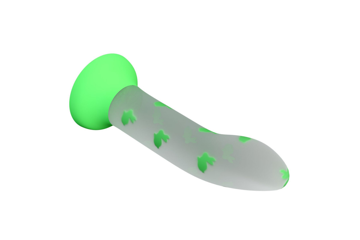 Светящийся в темноте фаллоимитатор Magical Nightfall с зелеными зайчиками - 17 см.