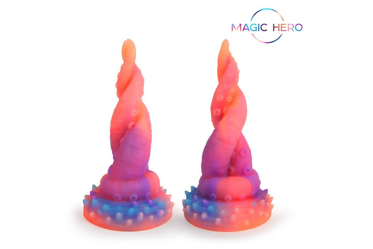 Фантазийный фаллоимитатор для любителей необычных секс-игрушек. Он подарит чувство заполненности и раскроет все глубины наслаждения. Конусовидная форма в виде закрученных щупалец осьминога обеспечит комфортное введение интимного аксессуара. Рельефная поверхность и небольшие шипики усилят удовольствие. Интимный аксессуар может использоваться во время прелюдии к сексу или стать его полноценным участником. Широкая присоска надёжно крепит изделие к ровной горизонтальной или вертикальной поверхности. Фаллоимитатор изготовлен из упругого материала. Хорошо гнётся в разные стороны, что позволяет использовать его в различных положениях. Минимальный диаметр - 2 см.