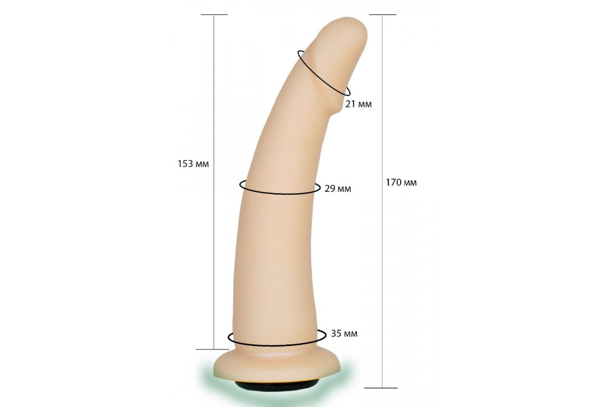 Гладкий фаллоимитатор с головкой на плоском основании. Рабочая длина - 15,3 см.