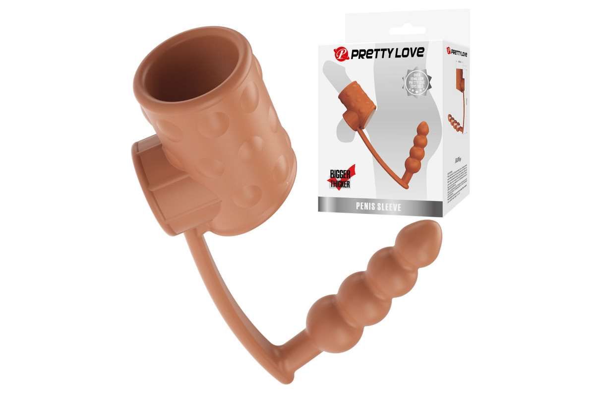 Телесная насадка на пенис и мошонку с анальным стимулятором Rilley