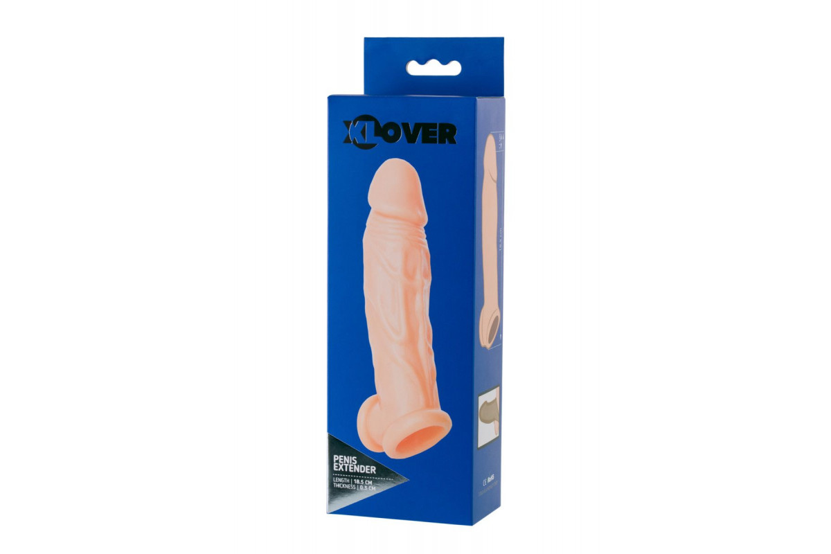 Телесная насадка на пенис с фиксацией мошонки — 18,5 см