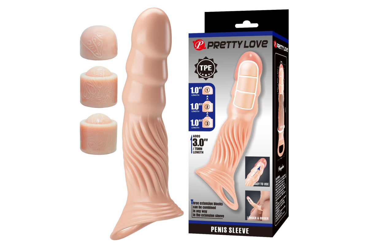 Телесная насадка на пенис с тремя вкладышами-удлинителями — идеальный выбор для тех, кто ищет новые ощущения и расширяет свои границы удовольствия