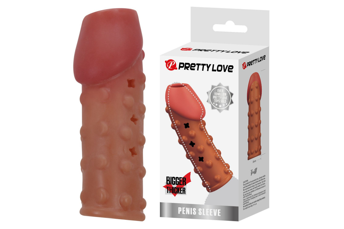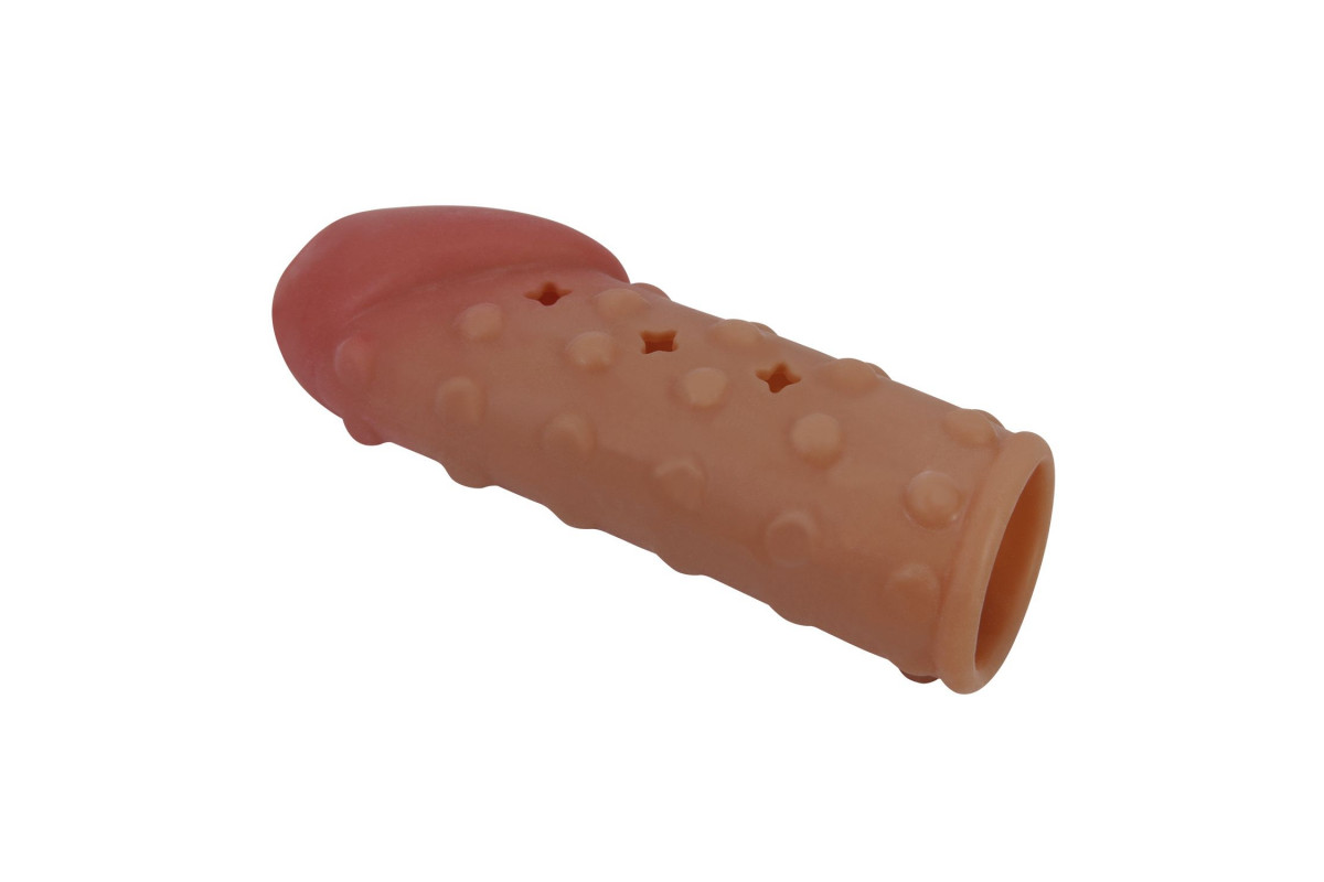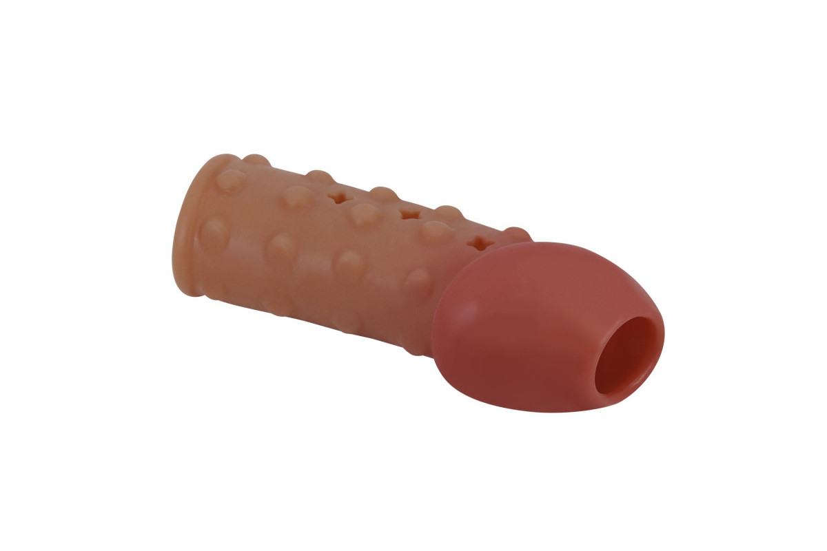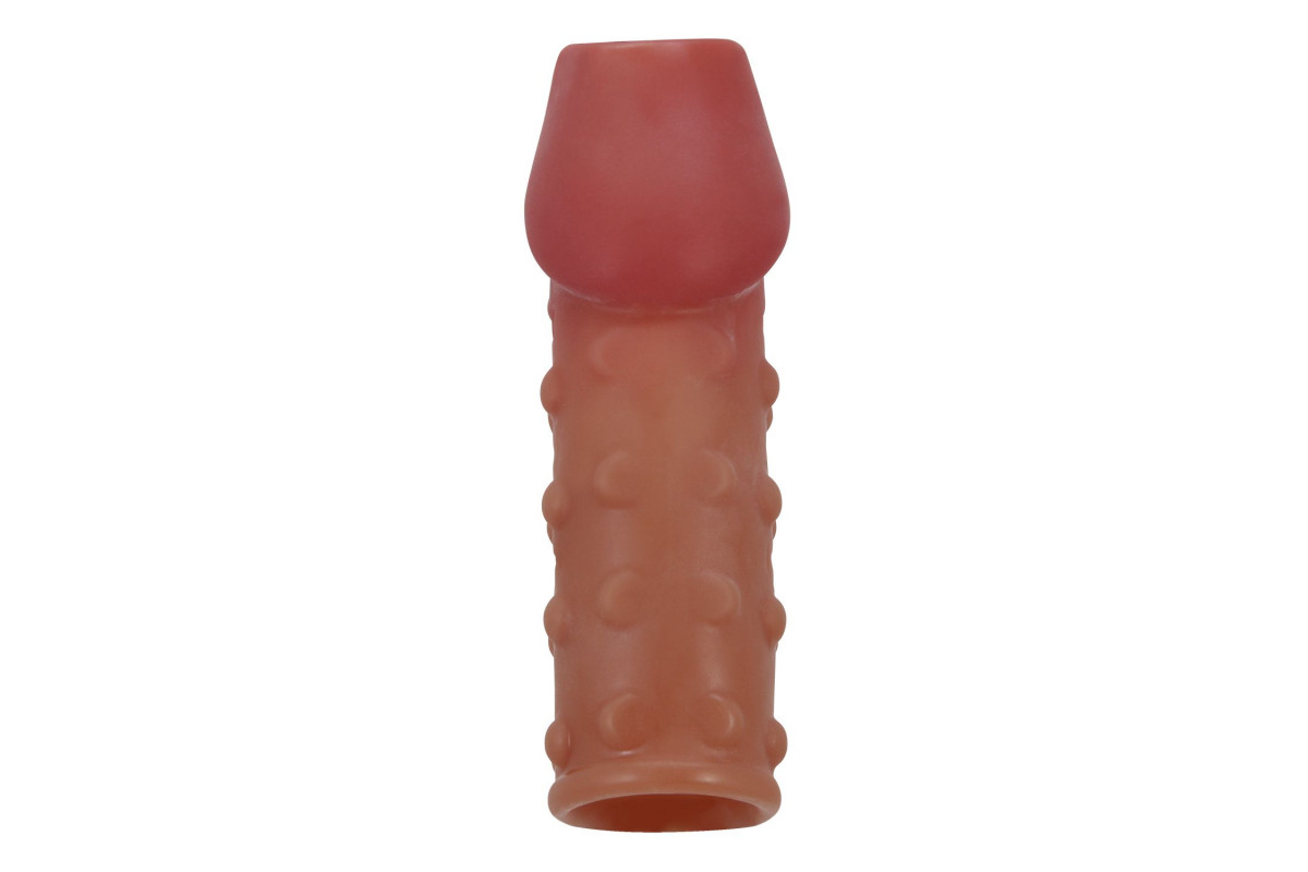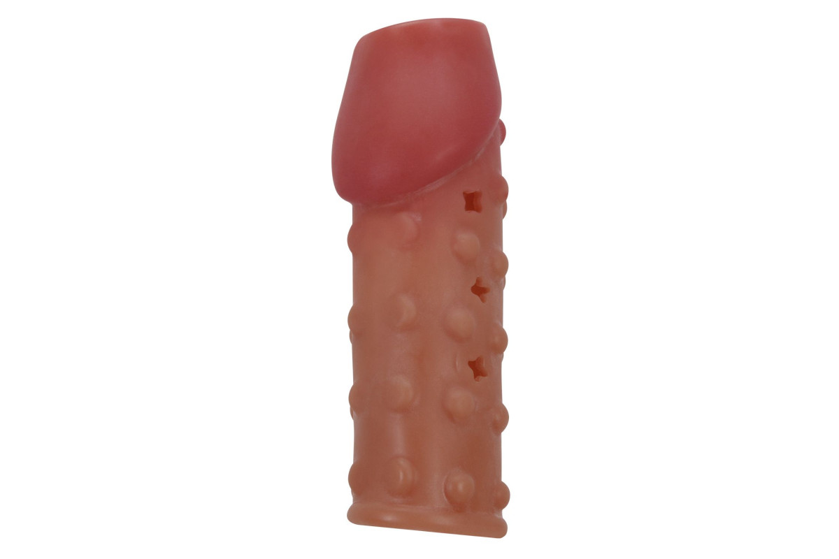Телесная открытая насадка на пенис с бугорками — 19,8 см
