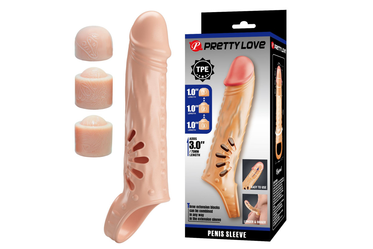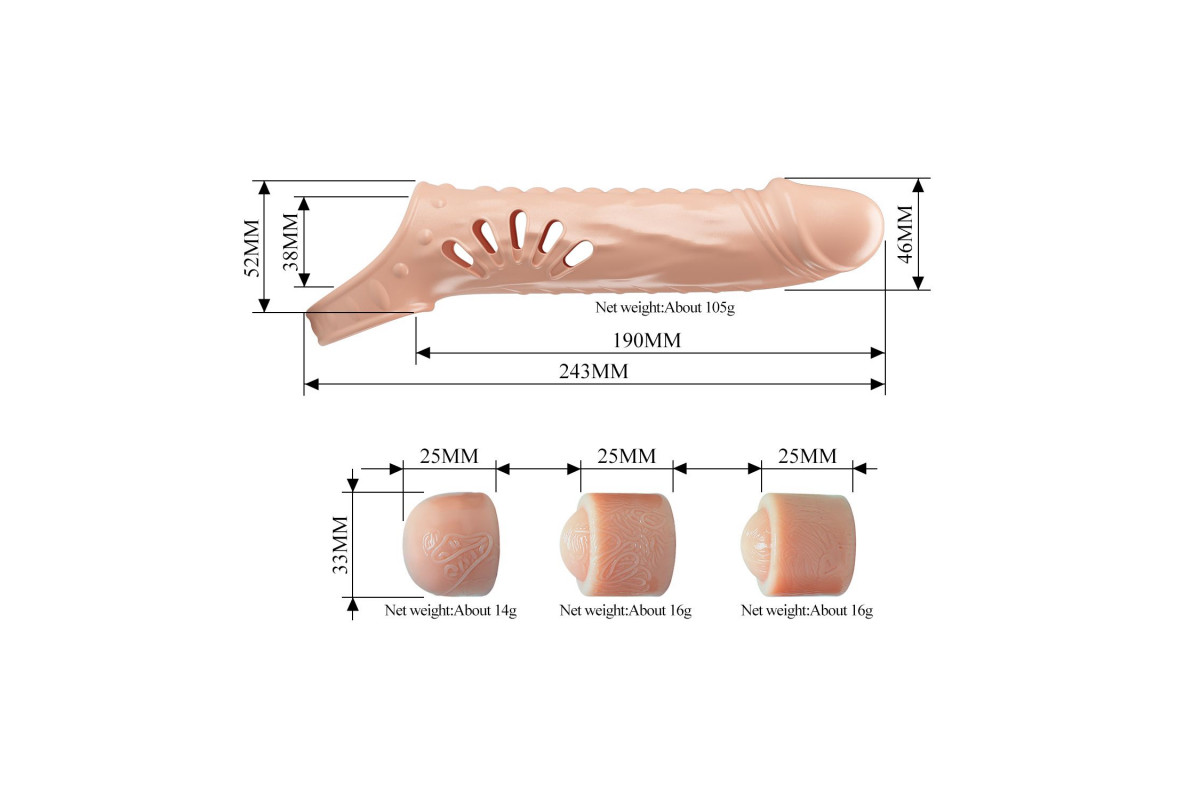 Телесная удлиняющая насадка на пенис с подхватом мошонки — усиление ощущений и комфорт