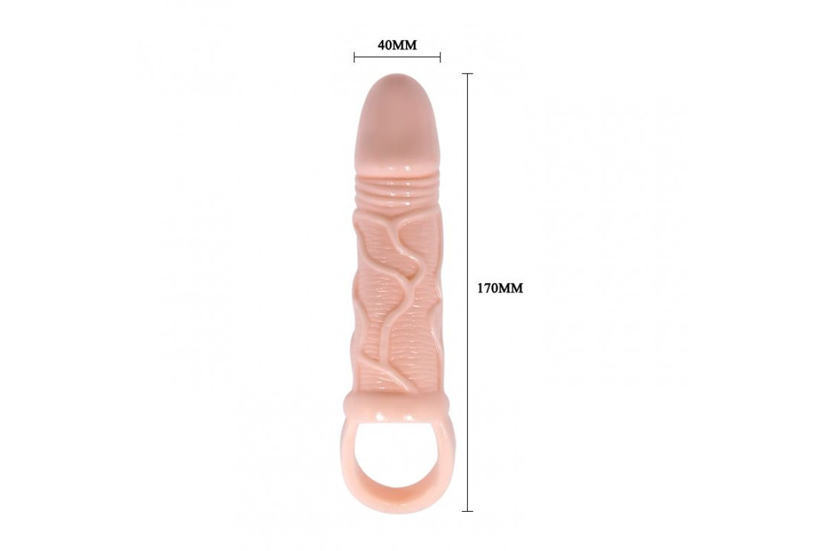 Телесная вибрирующая насадка на пенис с подхватом для мошонки Carson - 17 см