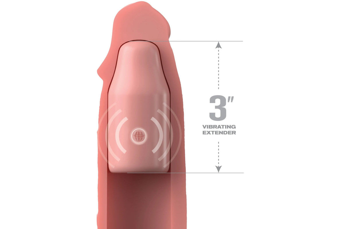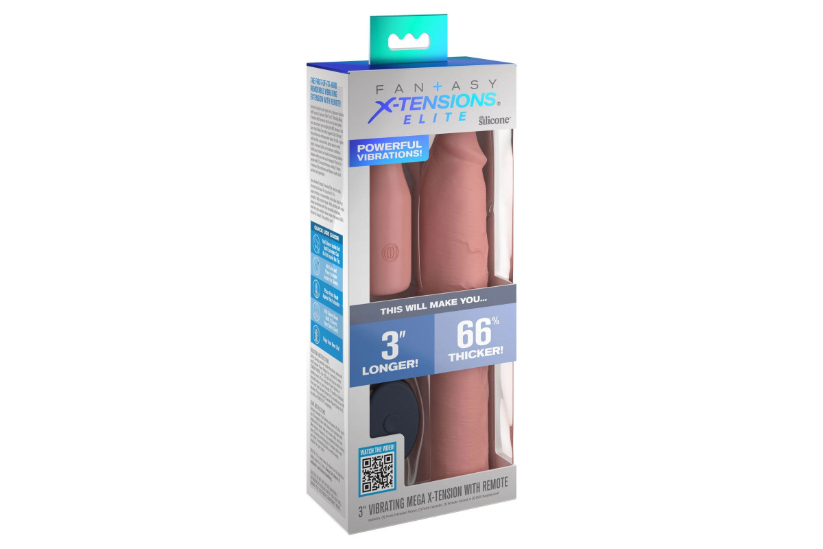 Телесная вибронасадка на член 3 Vibrating Mega X-tension with Remote — расширьте свои возможности