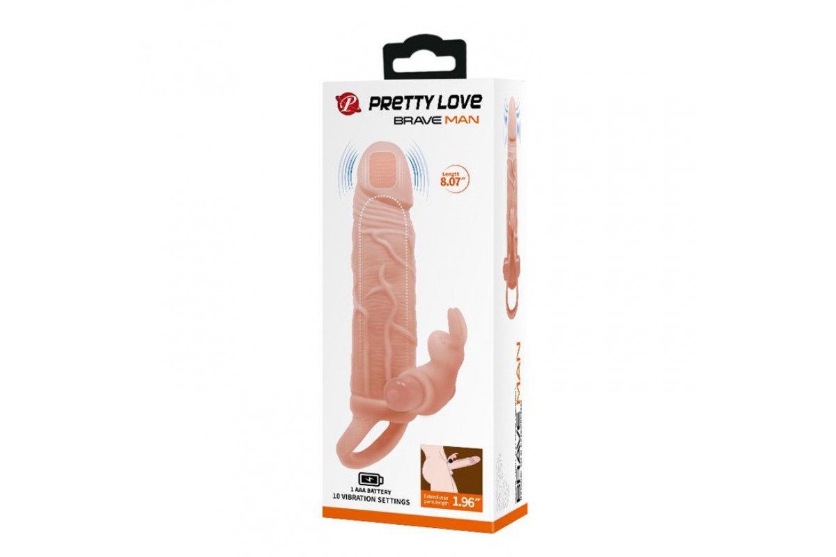 Телесная вибронасадка с клиторальным стимулятором Brave Man — 20,5 см
