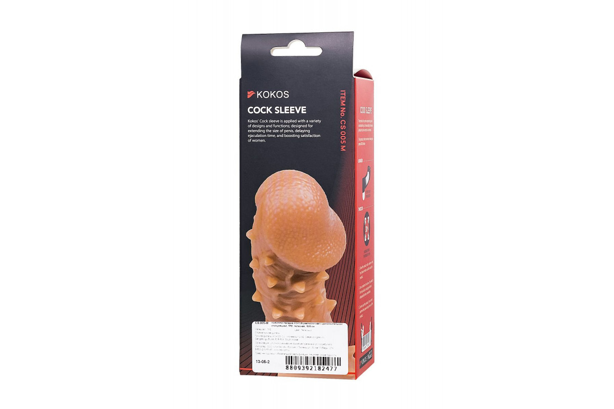 Увеличивающая насадка с фантазийным рельефом в виде пупырышек от KOKOS открывает новые возможности для взаимного удовольствия и воплощает фантазии о внушительном размере пениса.