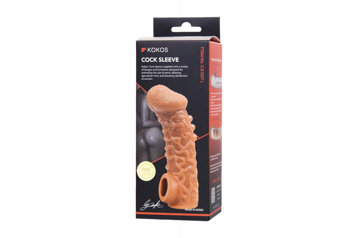 Увеличивающая насадка с фантазийным рельефом в виде вен и пупырышек от KOKOS открывает новые возможности для взаимного удовольствия и воплощает фантазии о внушительном размере пениса.